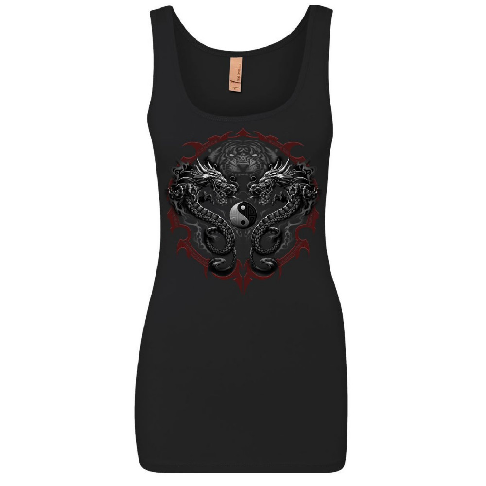BENGAL RISING DRAGONS women's tank top asian art wild tiger yin and yang top black