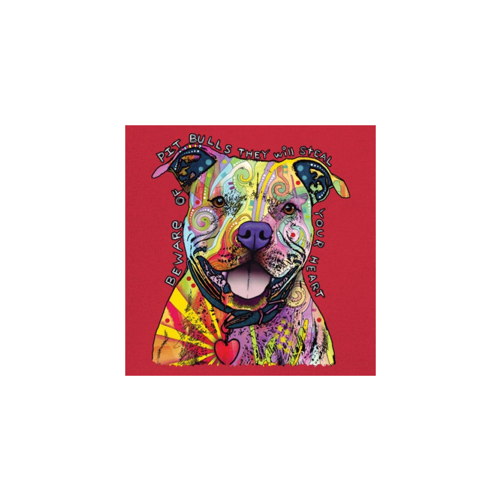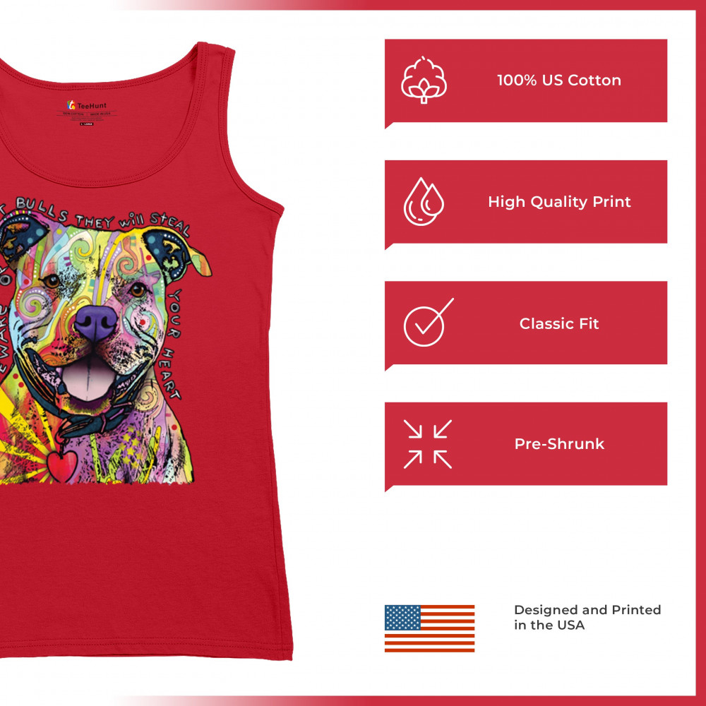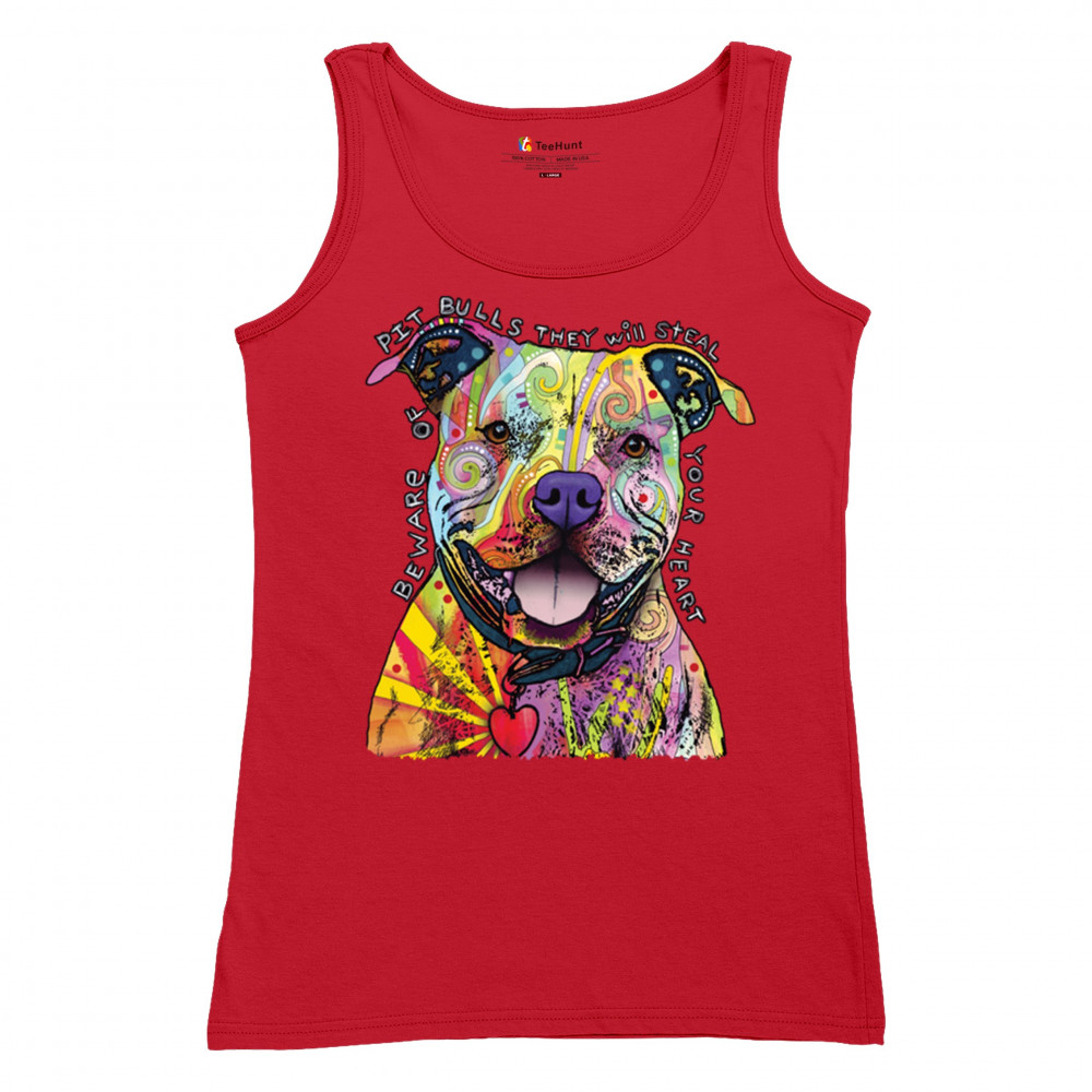 BEWARE OF PIT BULLS women's tank top dean russo art colorful cute dog red