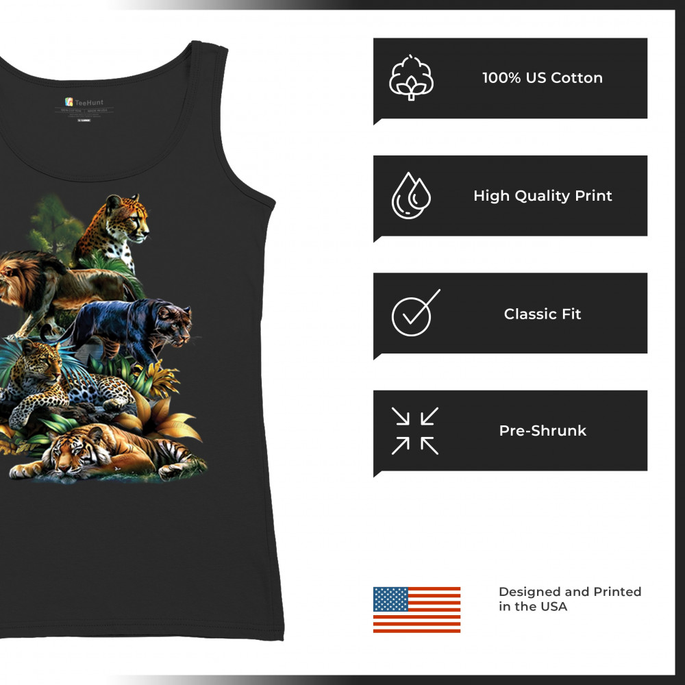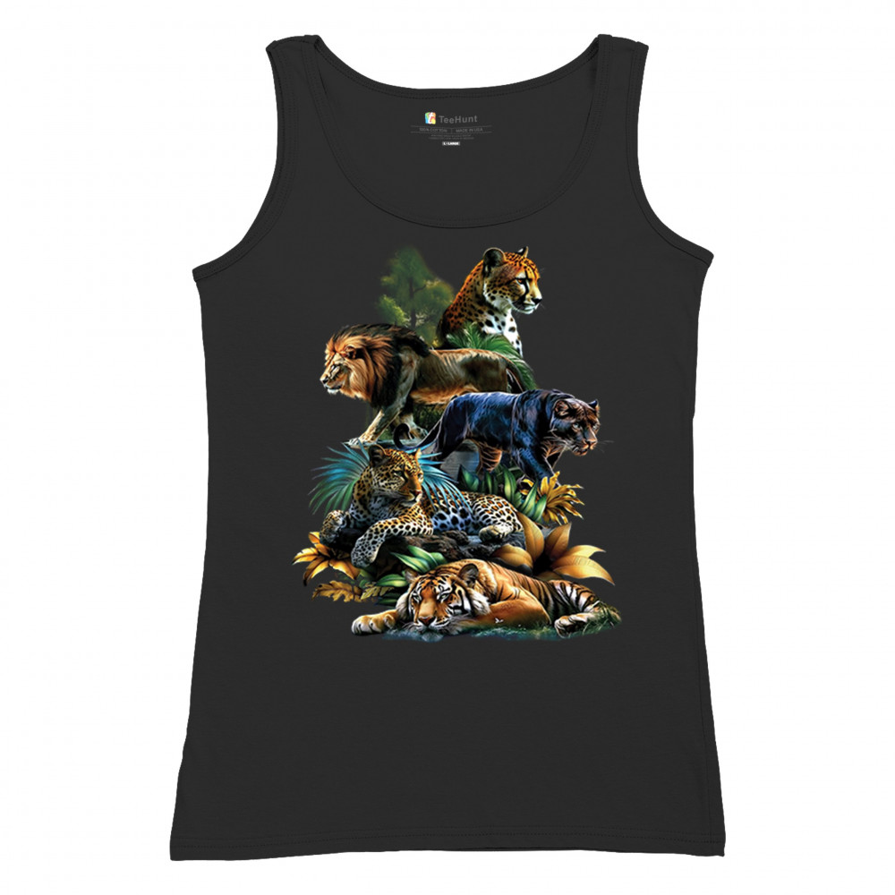 Bold big cat design with lion, tiger, leopard, cheetah, jaguar, and panther. A vivid tribute to wild nature, pride, and animal power.
