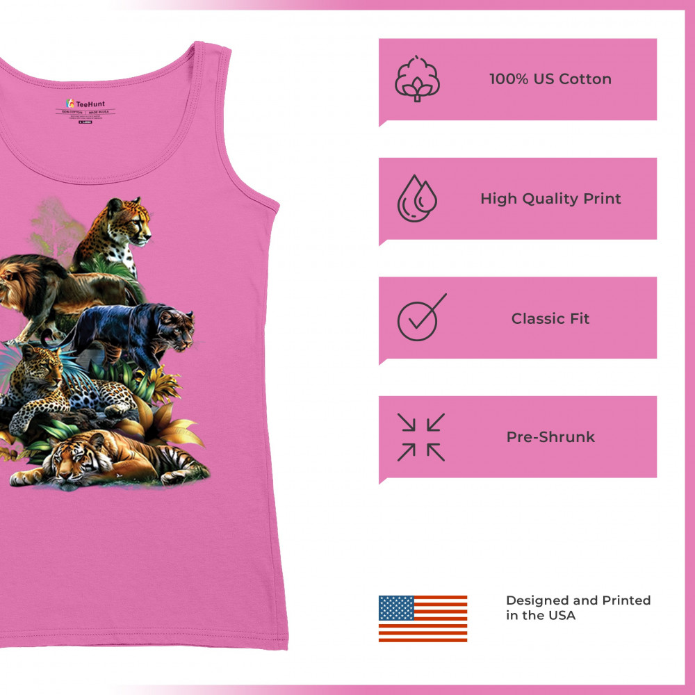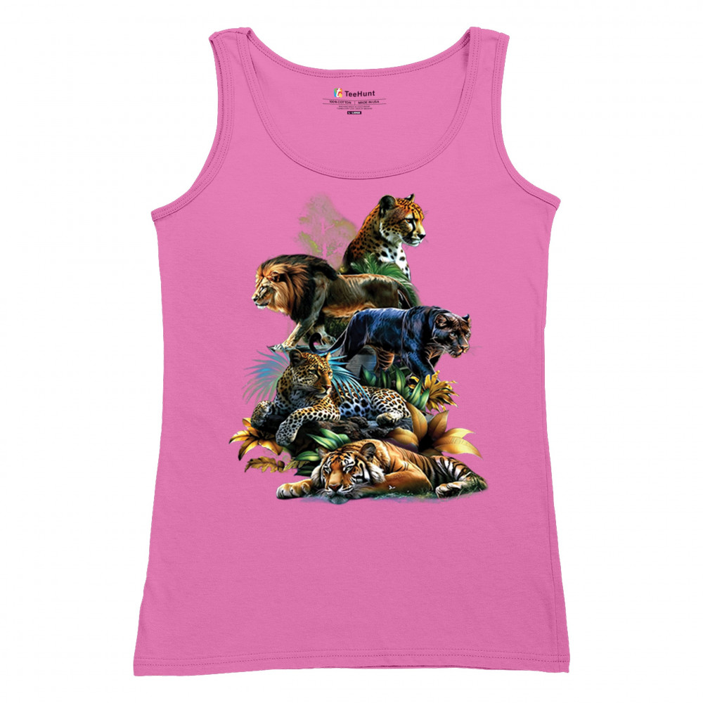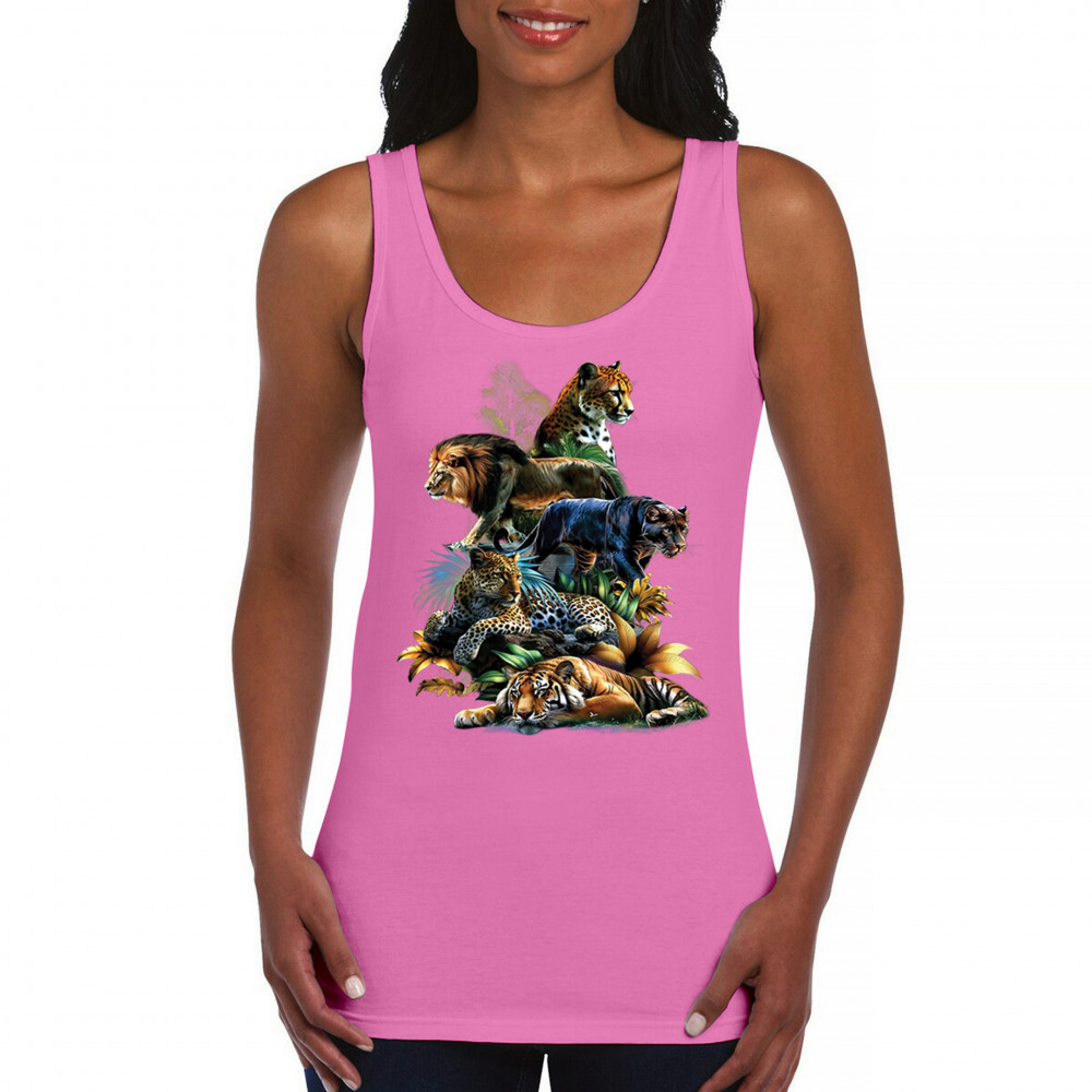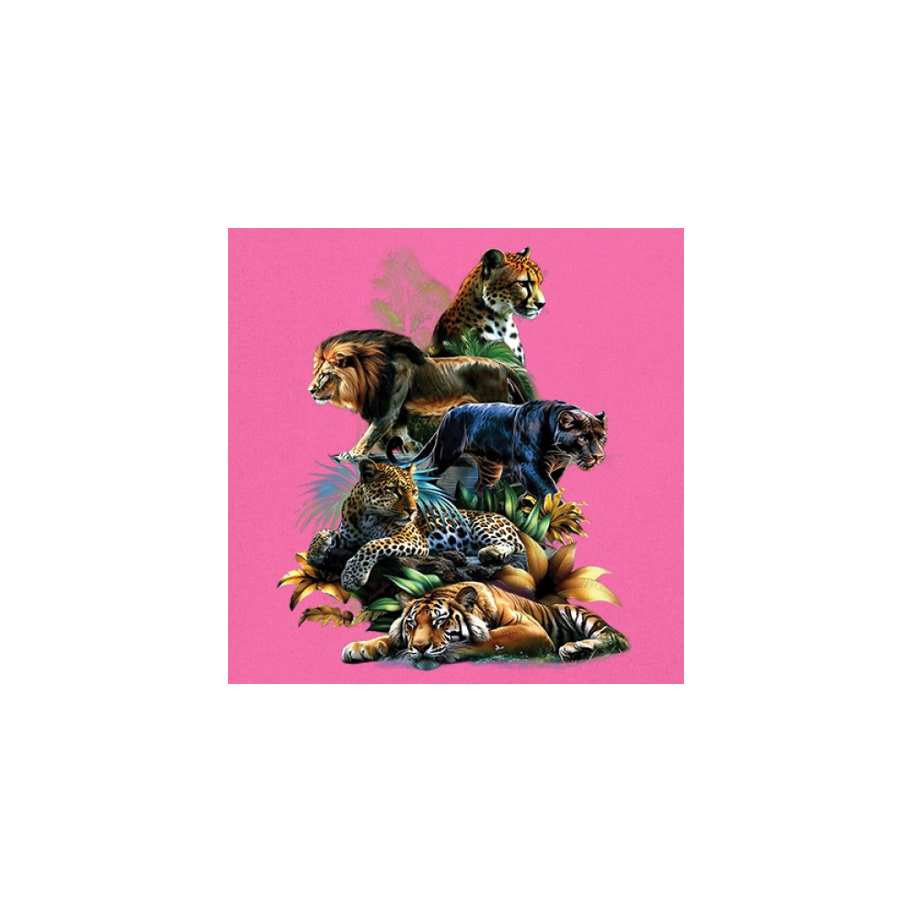 Bold big cat design with lion, tiger, leopard, cheetah, jaguar, and panther. A vivid tribute to wild nature, pride, and animal power.