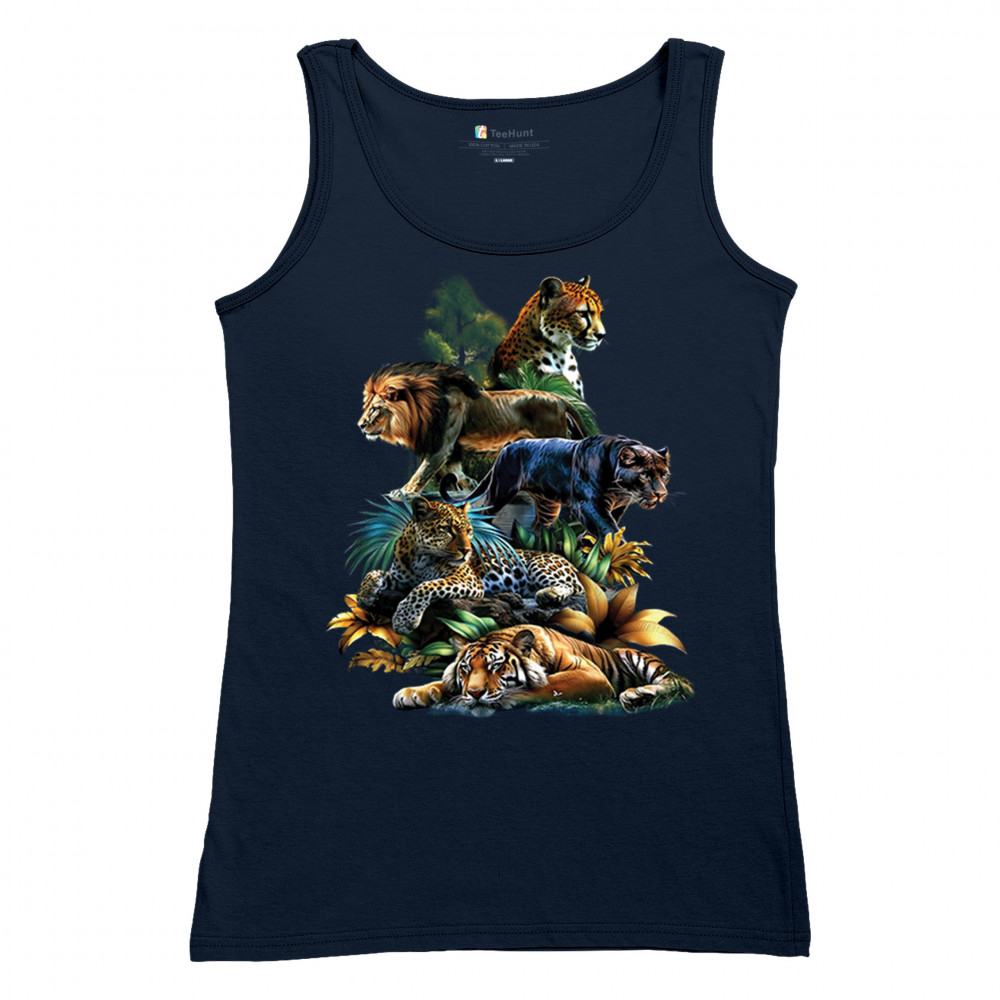 Bold big cat design with lion, tiger, leopard, cheetah, jaguar, and panther. A vivid tribute to wild nature, pride, and animal power.