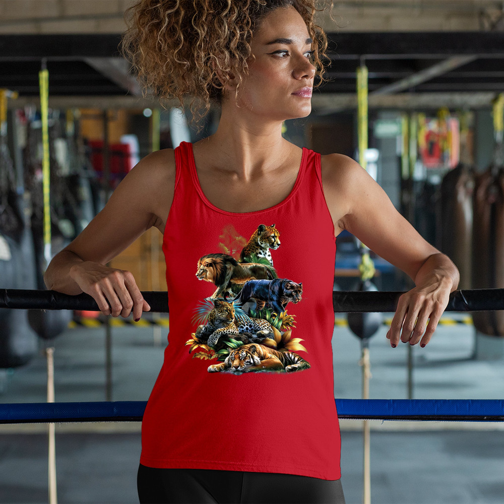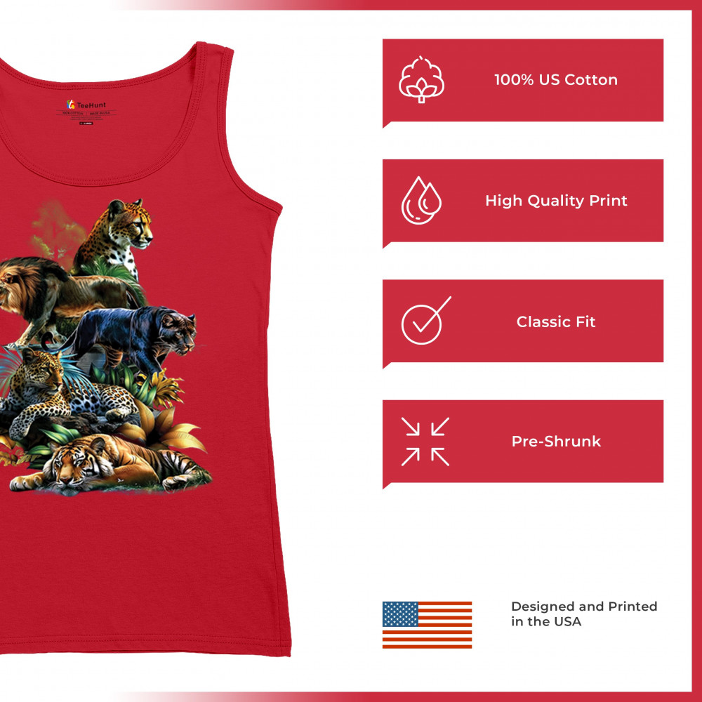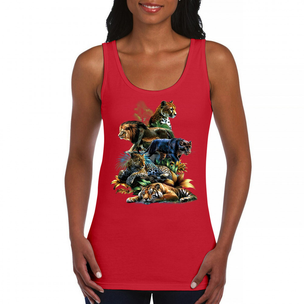 Bold big cat design with lion, tiger, leopard, cheetah, jaguar, and panther. A vivid tribute to wild nature, pride, and animal power.