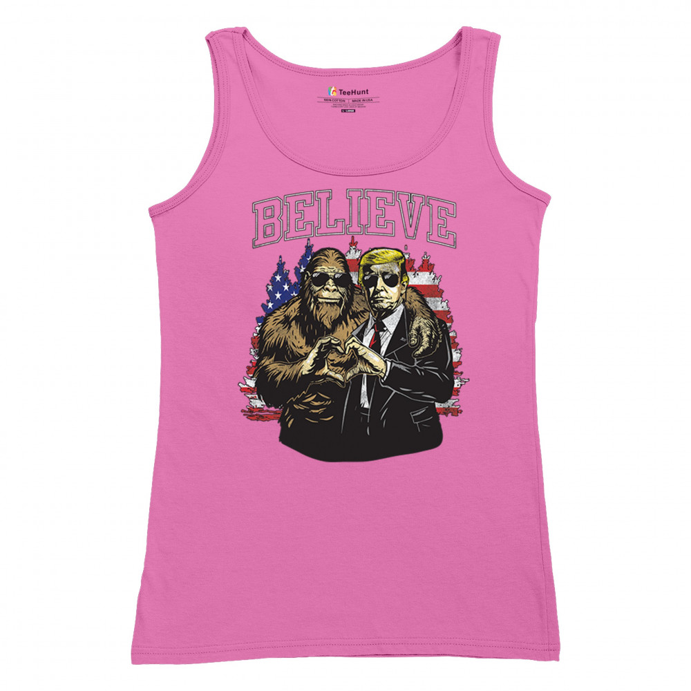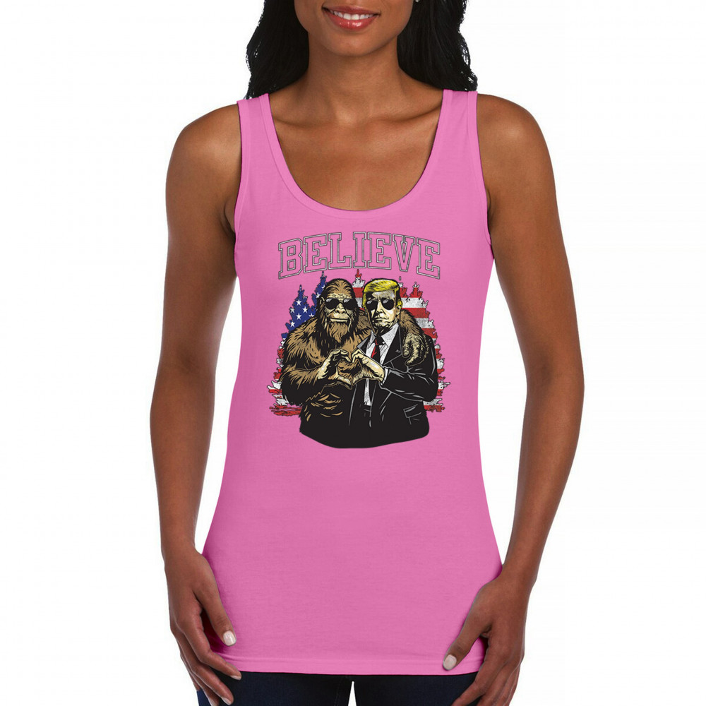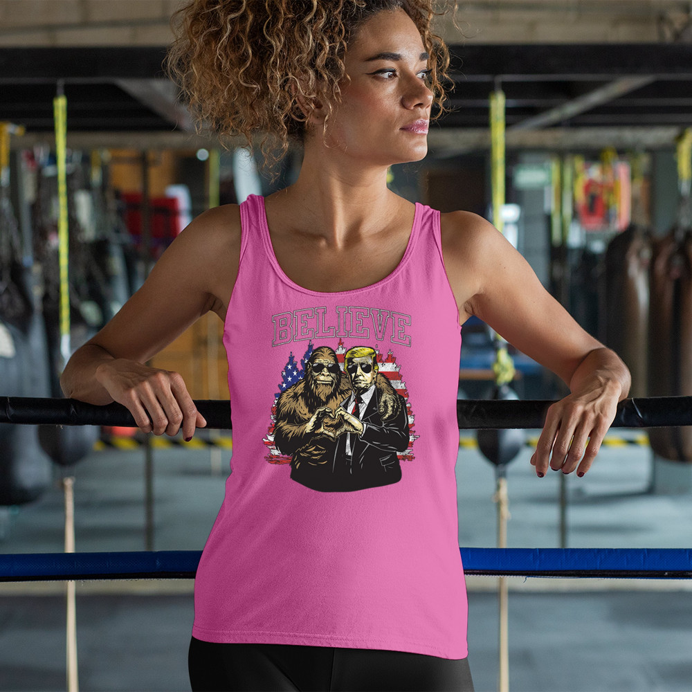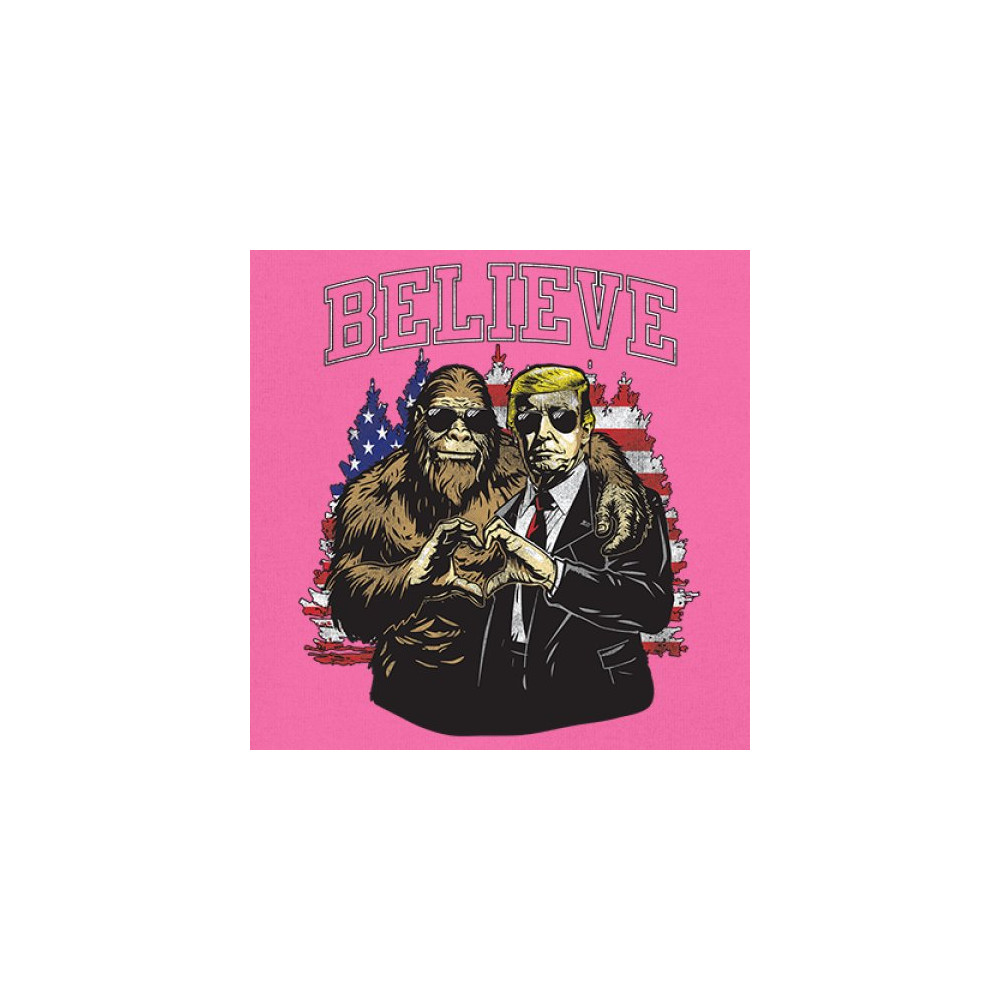The "Believe" design combines patriotic pride and conservative values with a touch of fun. Featuring Donald J. Trump and a loyal Bigfoot against the American flag, this graphic is perfect for Trump supporters, Republicans, and believers in America First. Celebrate the Red Wave, the 47th President, and the unstoppable fight for victory. Ideal for anyone with unwavering belief in the people's mandate.