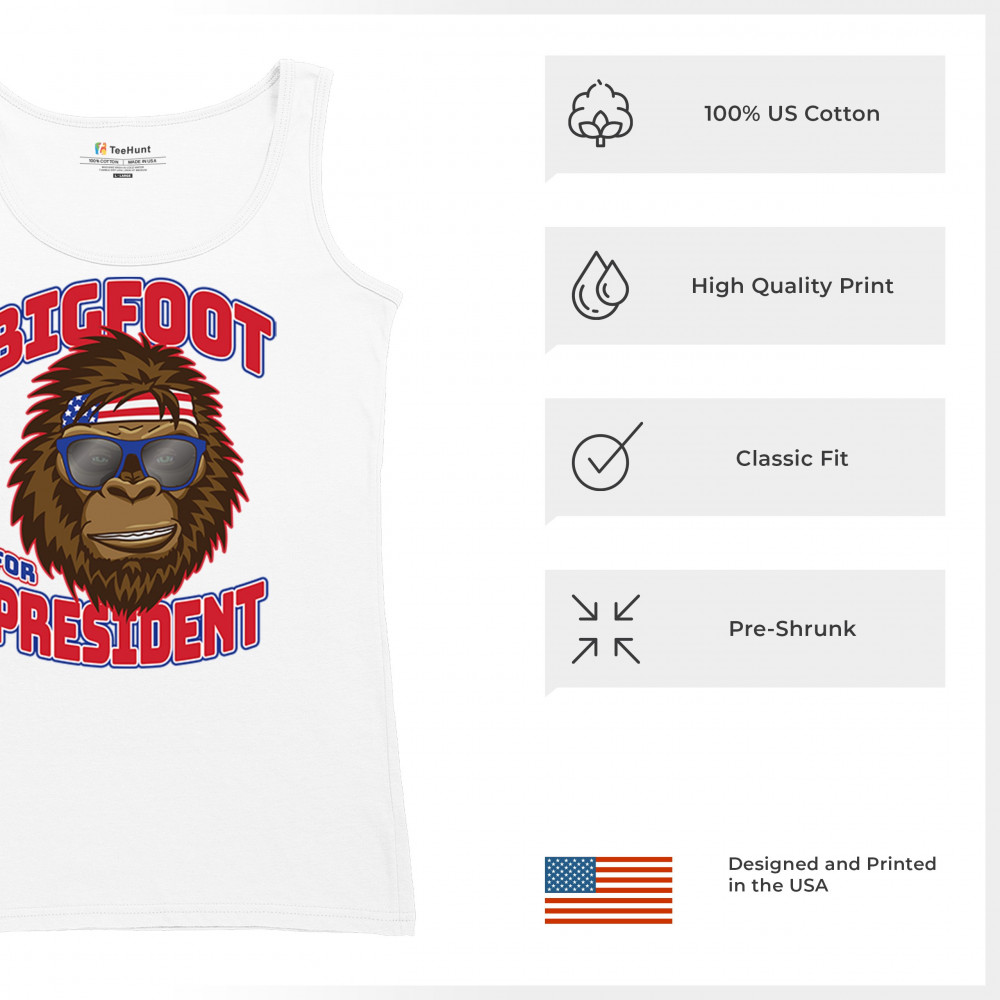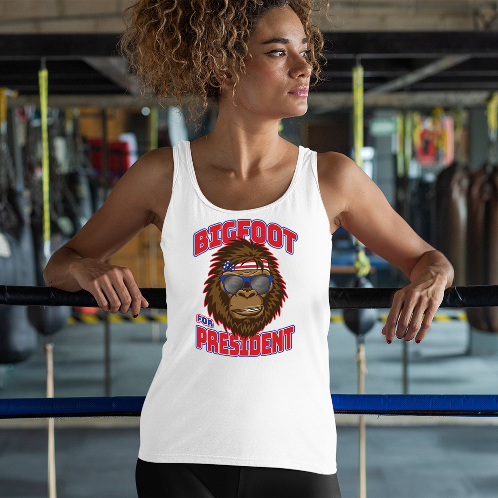 Show off your quirky style with the "Bigfoot for President" design. Perfect for casual wear and parties, featuring Bigfoot in sunglasses and a patriotic bandana.