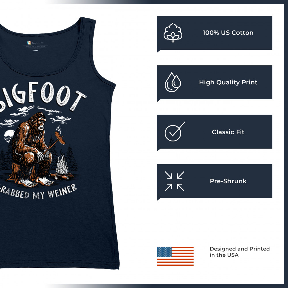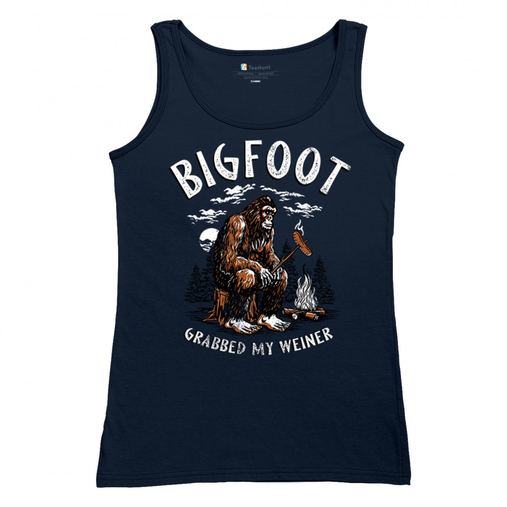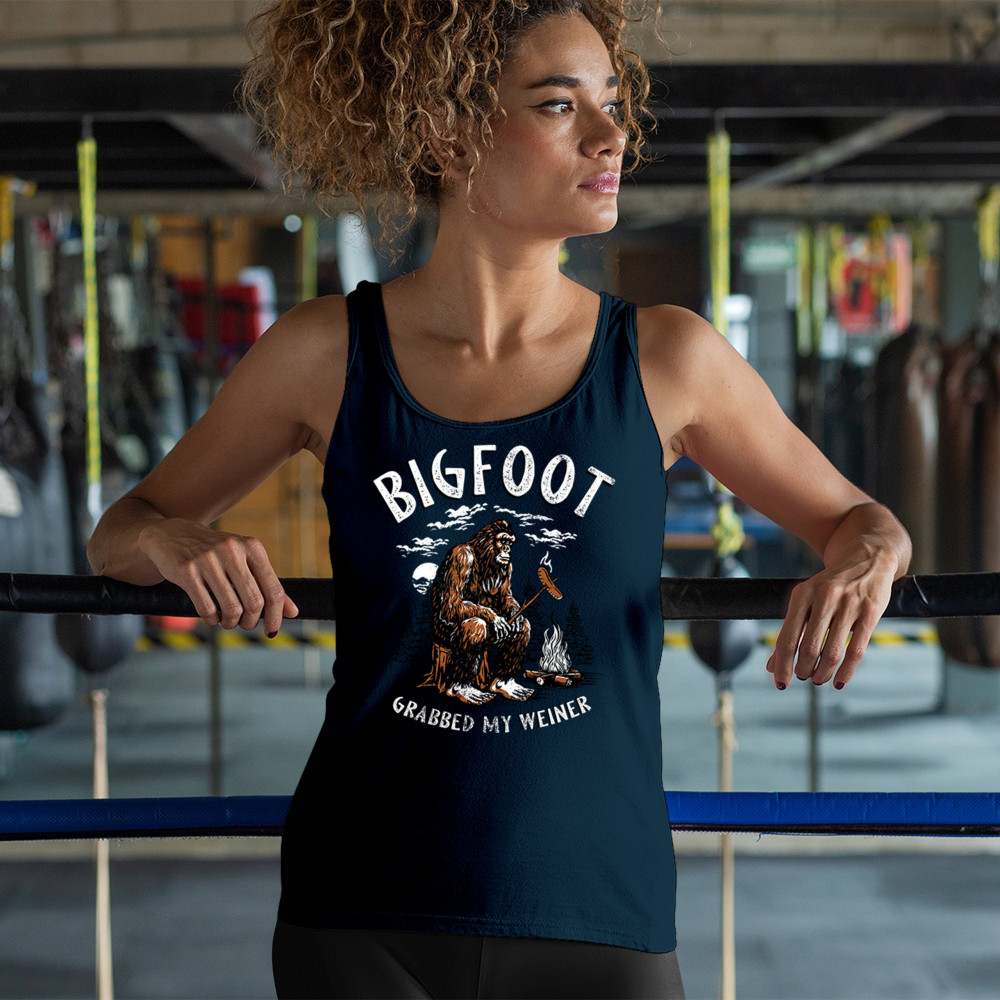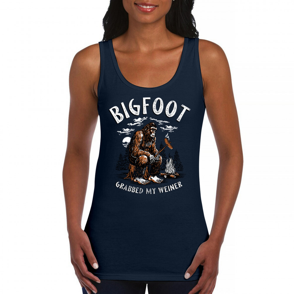 The Bigfoot Grabbed My Weiner design brings cheeky campfire humor to your outdoor adventures. Featuring a cartoon-style Sasquatch roasting a sausage by the fire, it’s perfect for cryptid lovers, campers, and jokesters. Ideal for BBQs, bonfires, forest festivals, and anyone who enjoys weiner jokes with their wilderness.