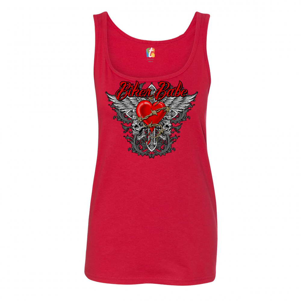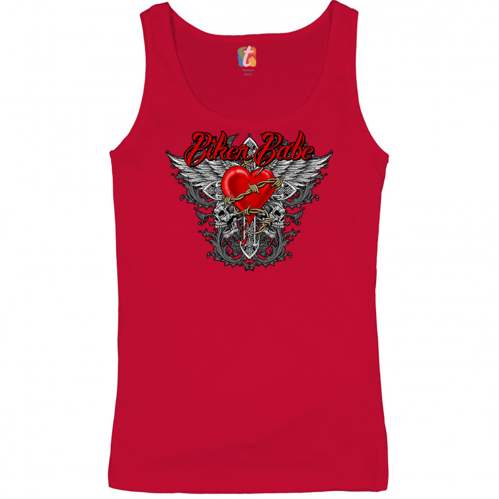 BIKER BABE women's tank top motorcycle chick live to ride born to be wild red
