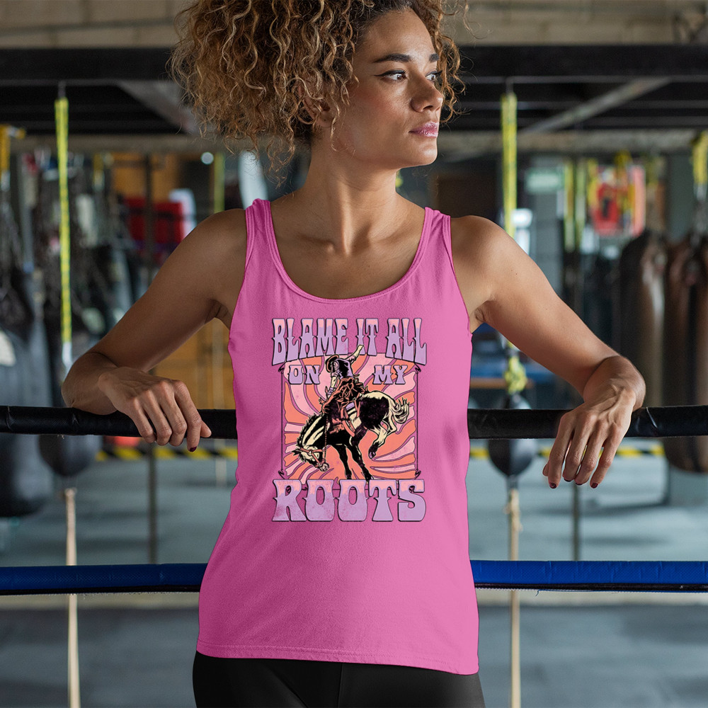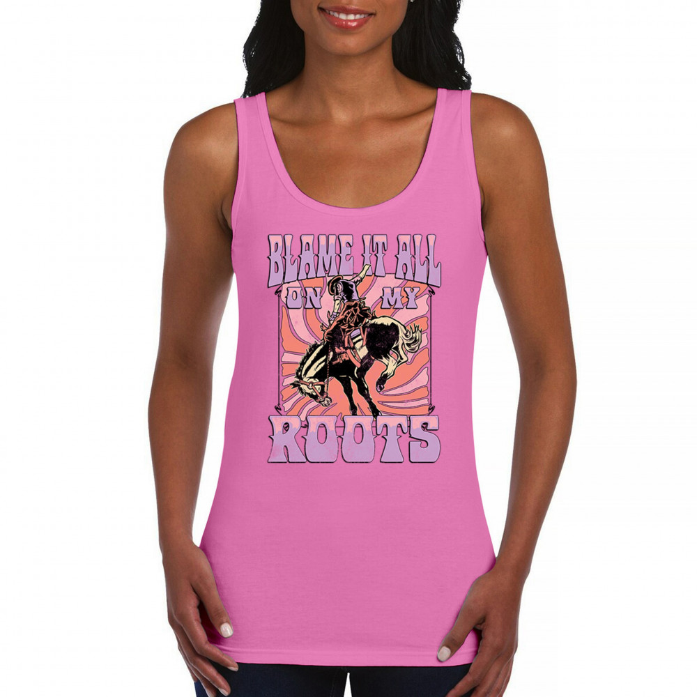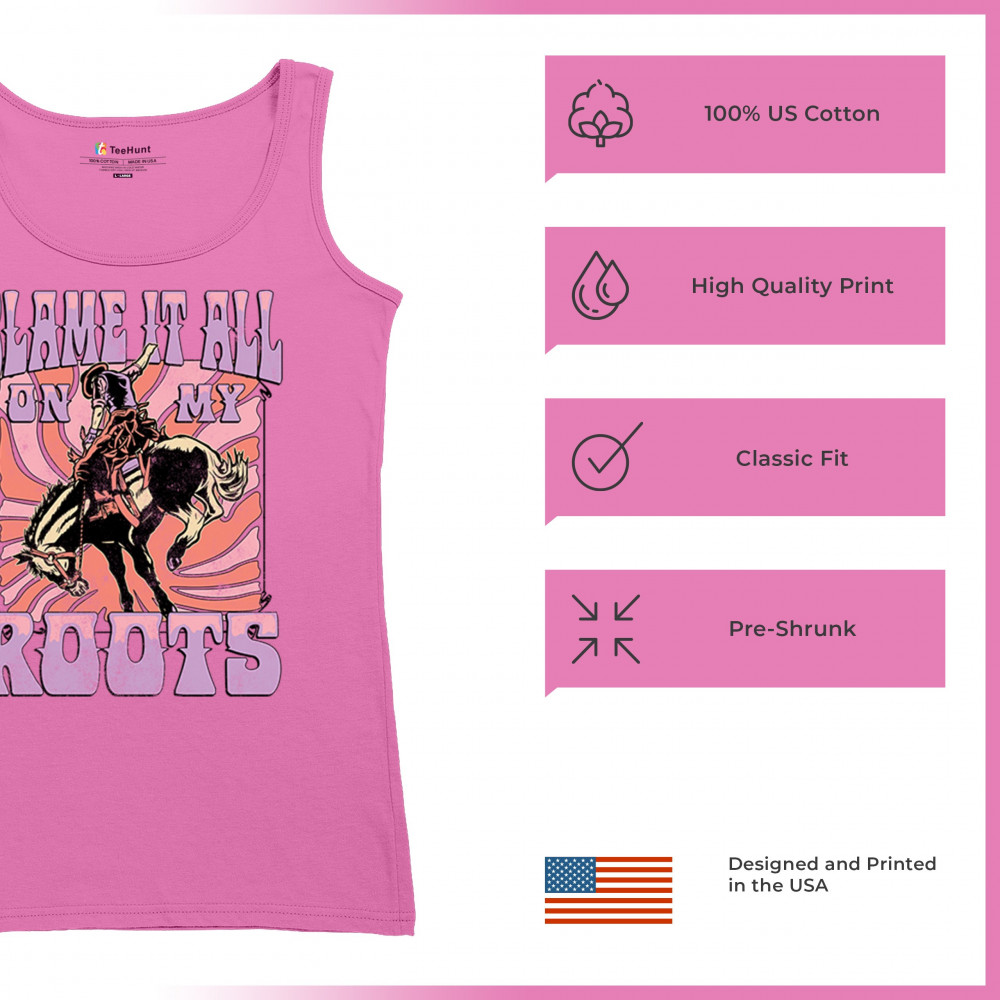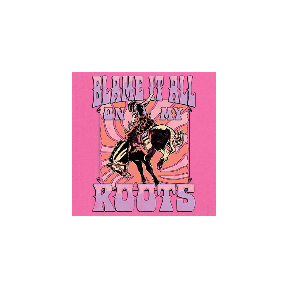 Blame It All On My Roots is vintage country style with rodeo spirit, perfect for small town life, barn dances, and wild country pride.
