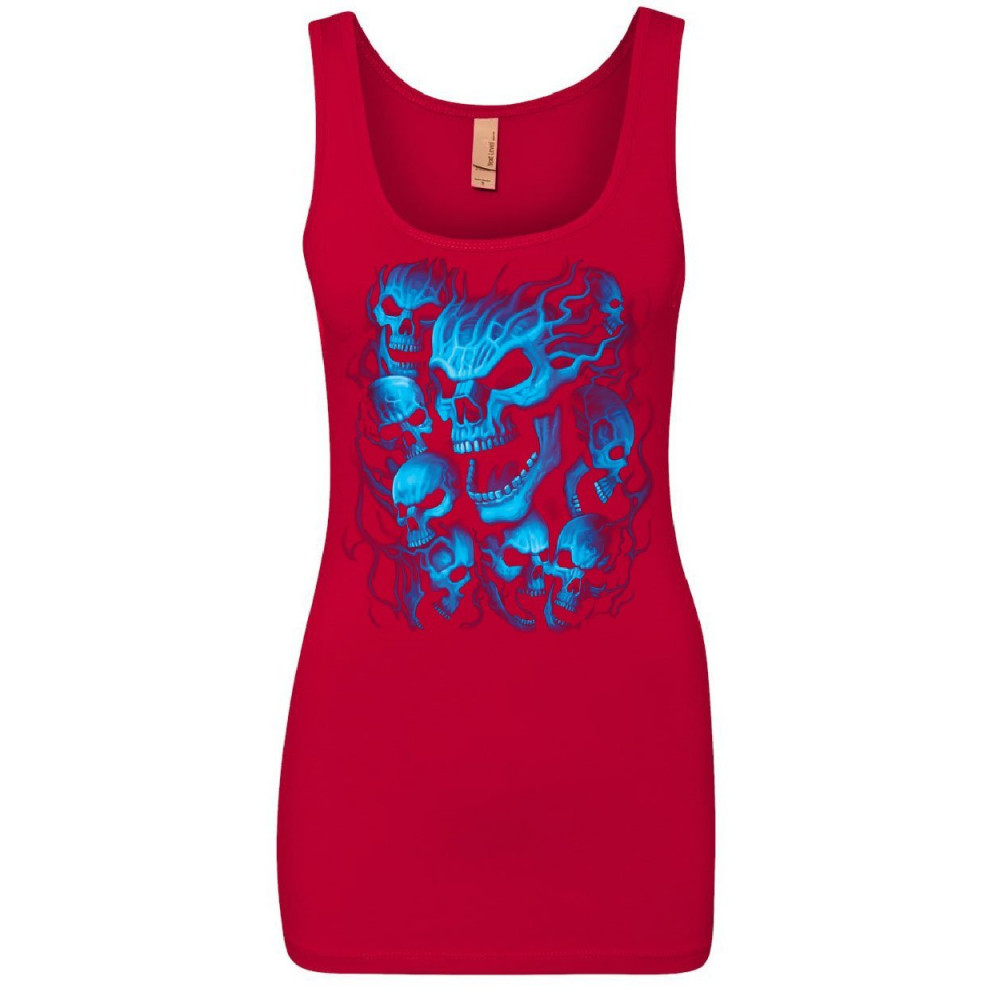 BLUE SKULLS women's tank top skull face death dead reaper hell evil demon top red
