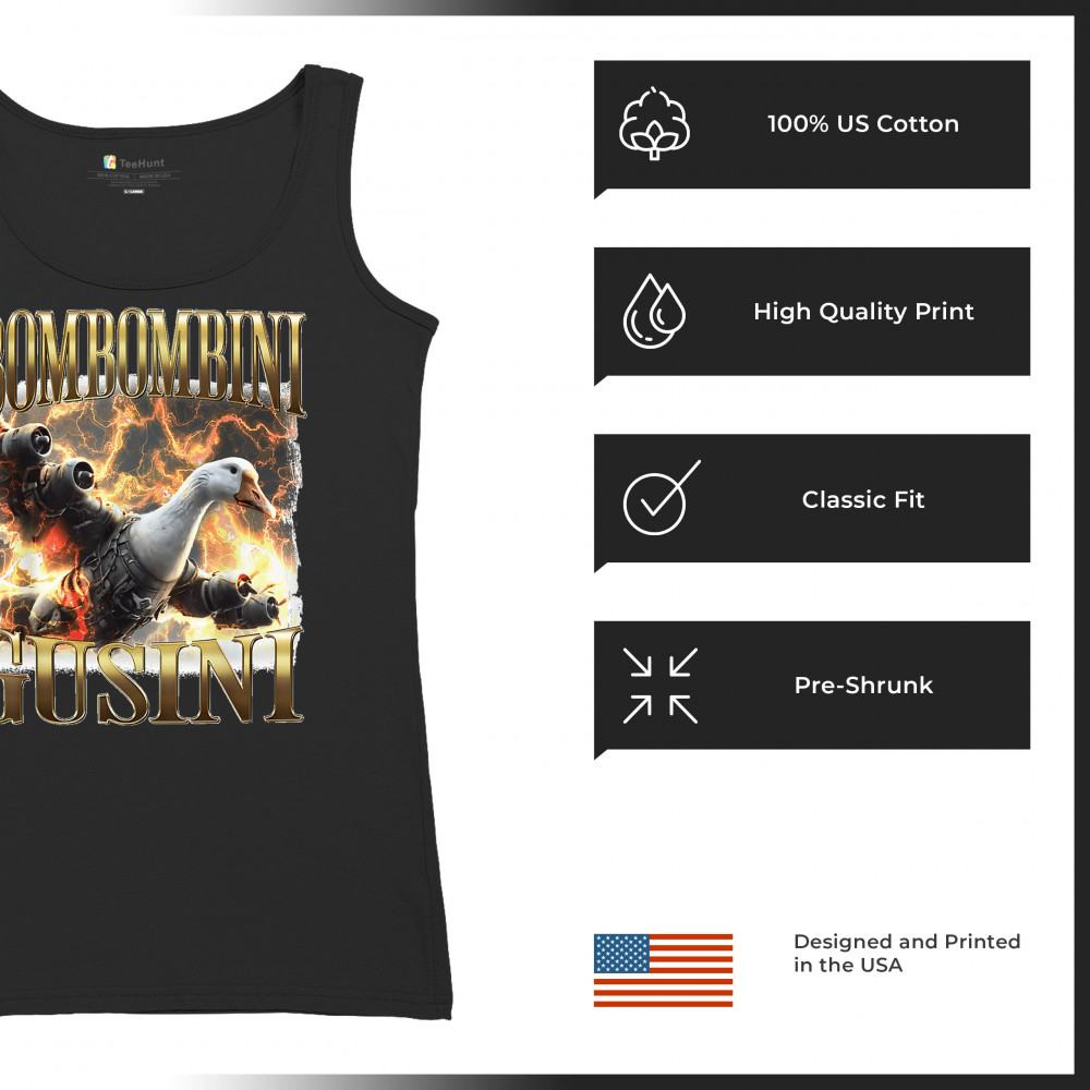 Bombombini Gusini is meme chaos at Mach speed. Featuring a mechanized goose powered by pure Italian Brainrot energy, this design blends cursed-core humor, Gen Z absurdity, ironic fashion, and weirdcore visuals. Perfect for animal meme fans, TikTok-core addicts, and anyone whose humor is completely unhinged.