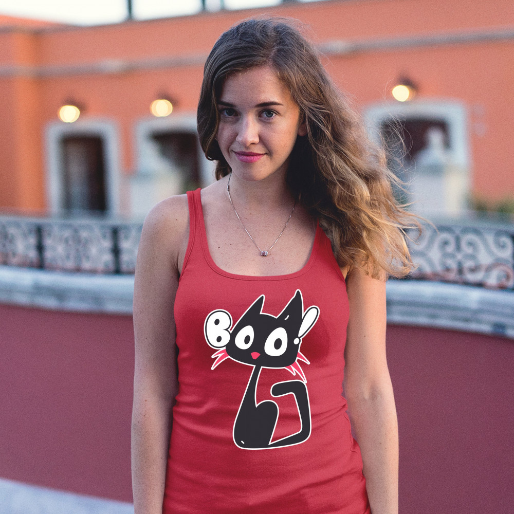 BOO KITTEN women's tank top happy halloween trick-or-treating funny cat red