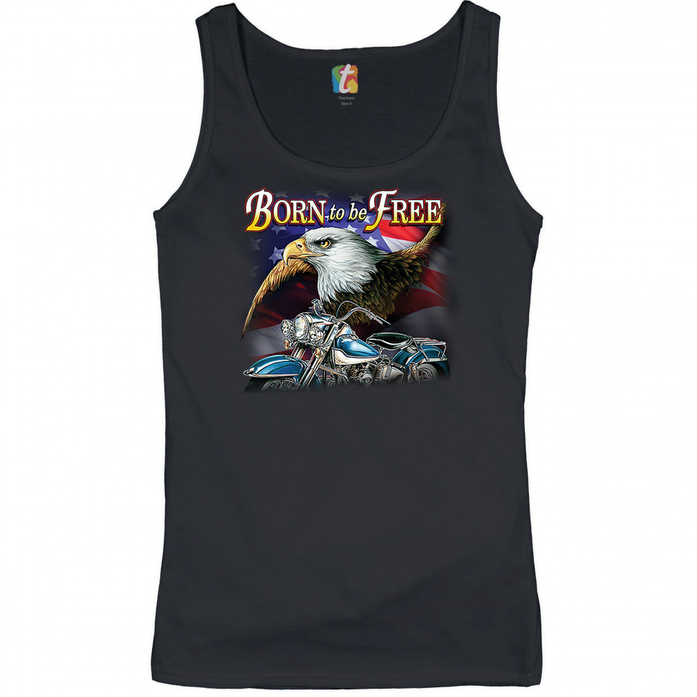 BORN TO BE FREE women's tank top american bald eagle chopper biker patriotic black