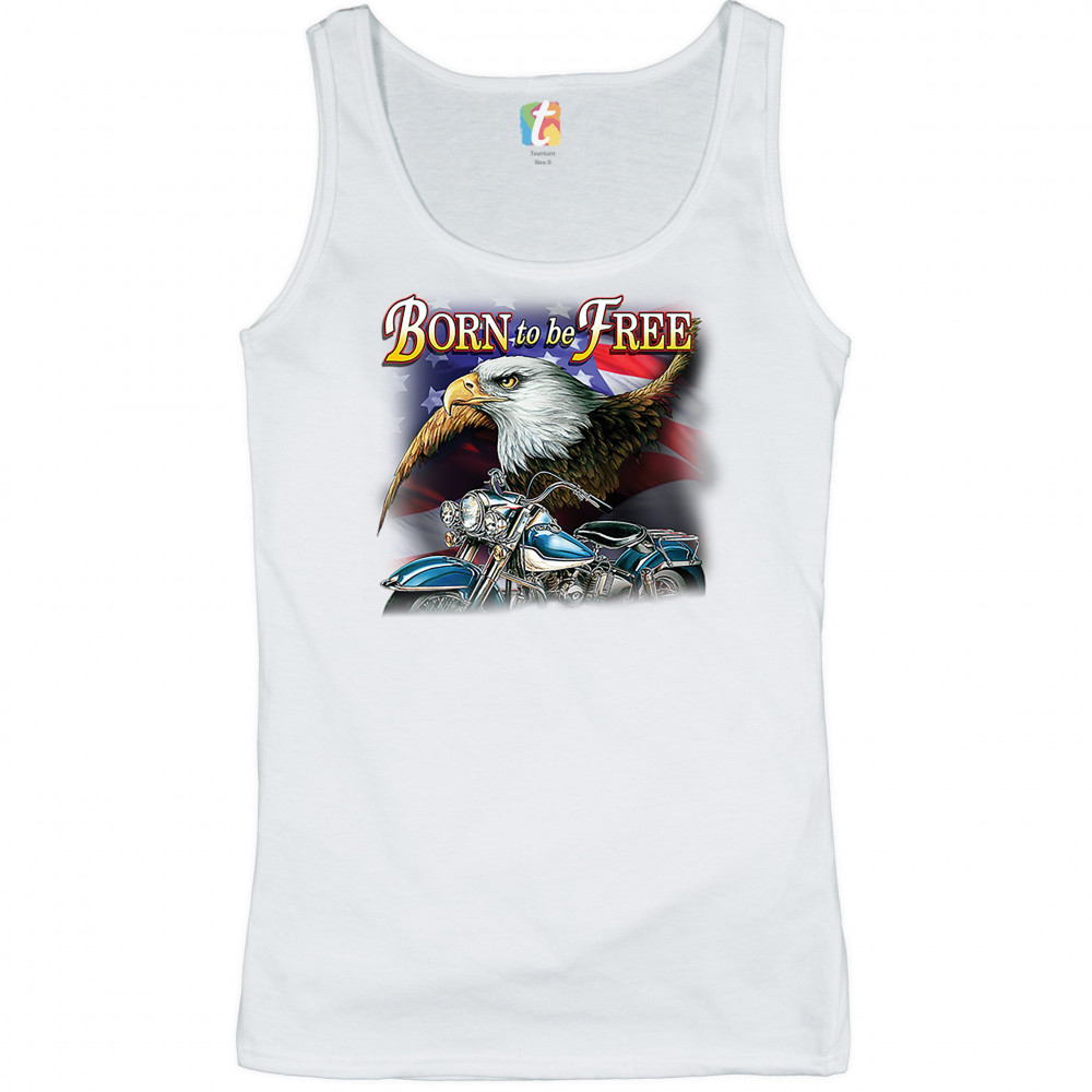 BORN TO BE FREE women's tank top american bald eagle chopper biker patriotic white