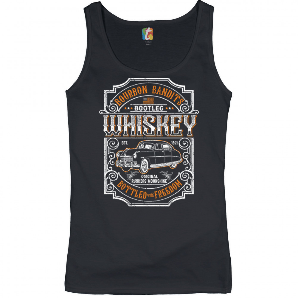 BOURBON BANDIT'S BOOTLEG WHISKEY women's tank top original runners moonshine black
