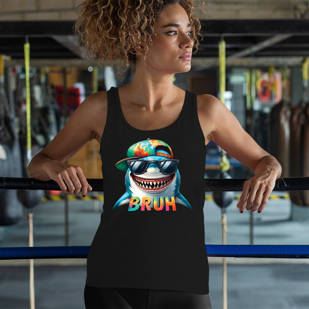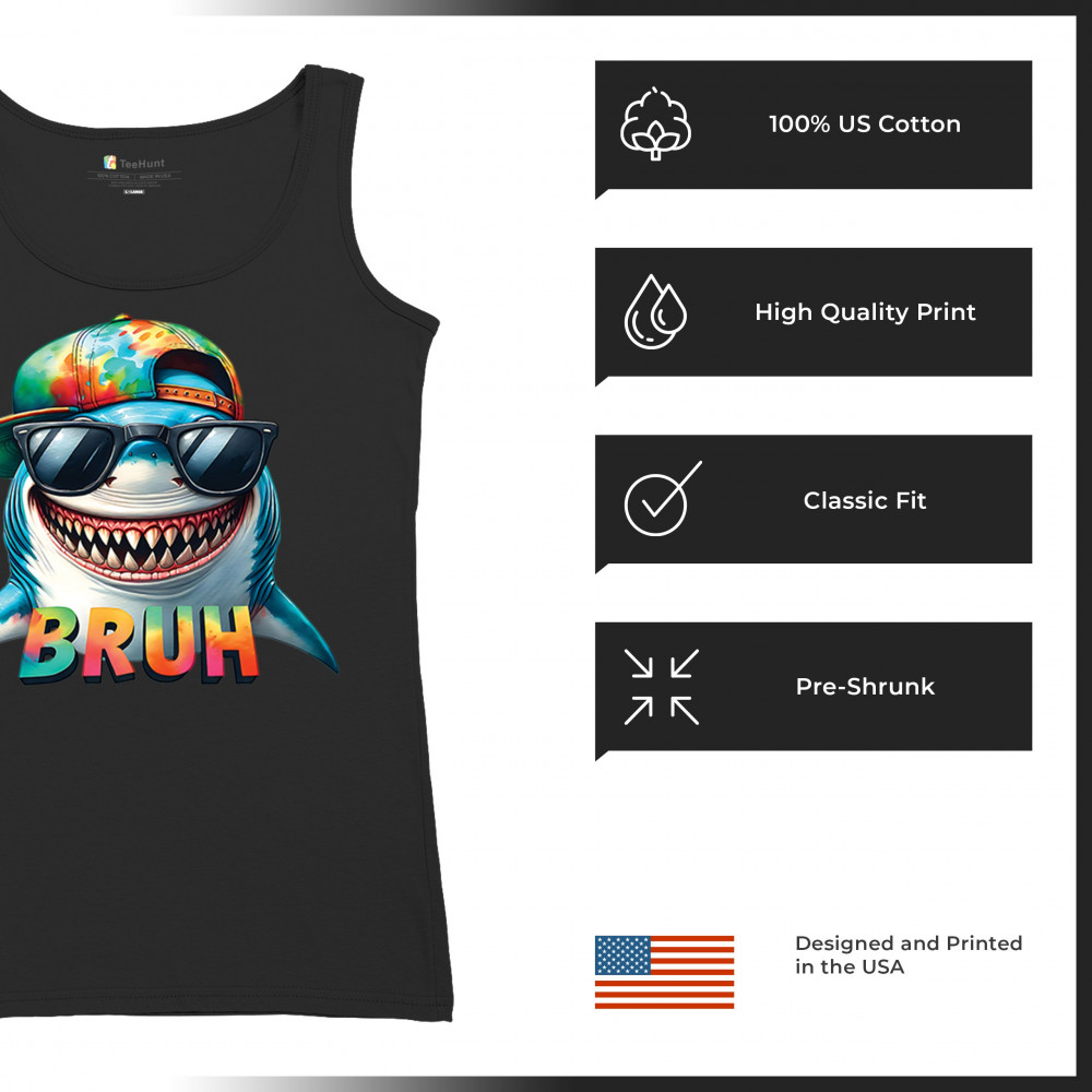 Bruh Shark meme shirt with Gen Z humor, cartoon shark design, summer beach vibes, Sigma Aura, and Italian Brainrot internet humor.