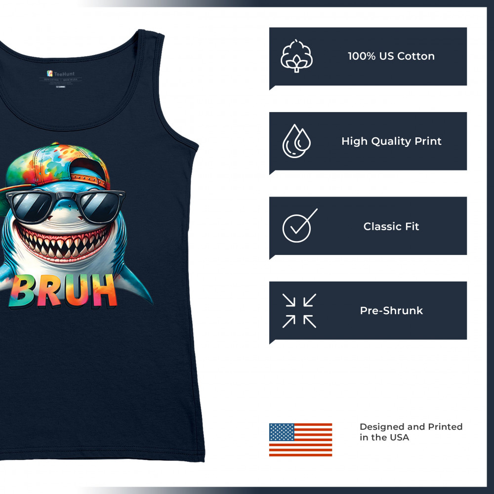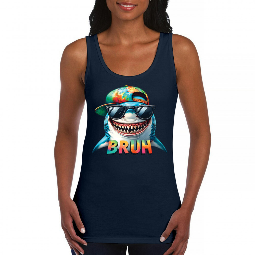 Bruh Shark meme shirt with Gen Z humor, cartoon shark design, summer beach vibes, Sigma Aura, and Italian Brainrot internet humor.