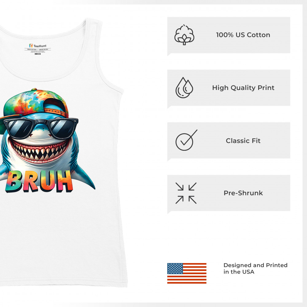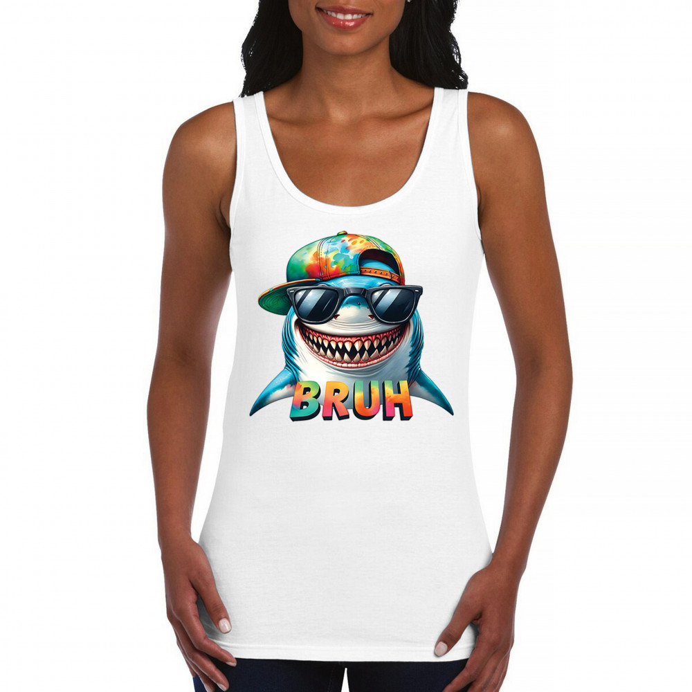 Bruh Shark meme shirt with Gen Z humor, cartoon shark design, summer beach vibes, Sigma Aura, and Italian Brainrot internet humor.