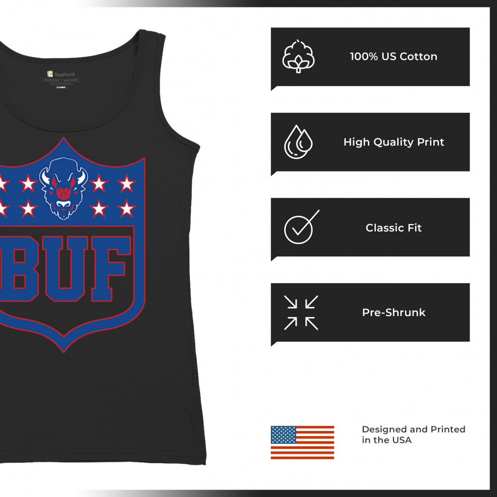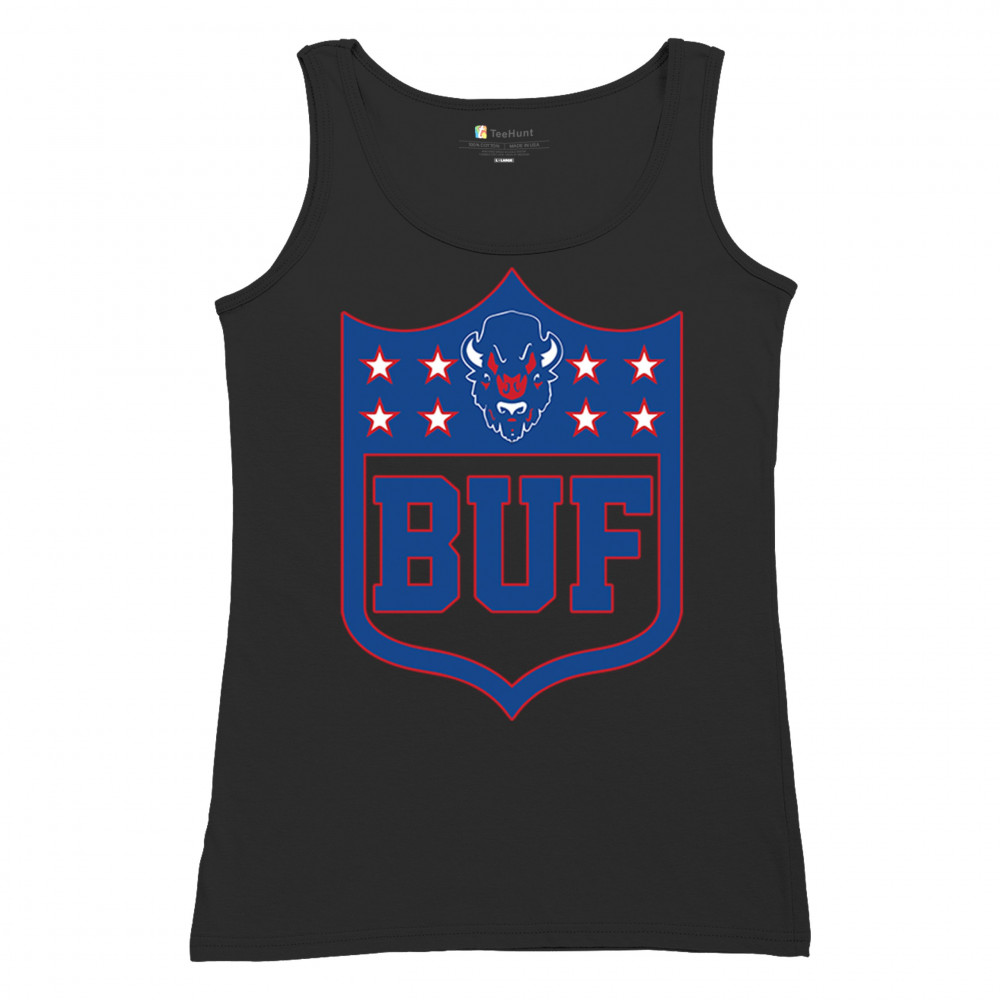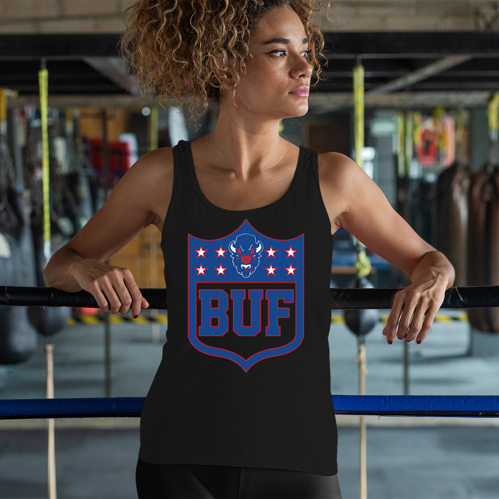 Bold Buffalo bison shield design for game day gear, tailgating, Sunday football, and championship pride in The Queen City.