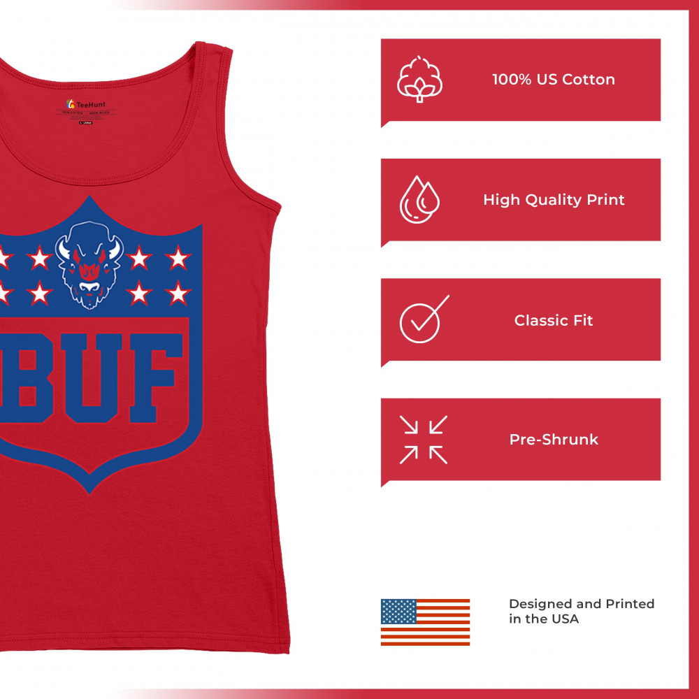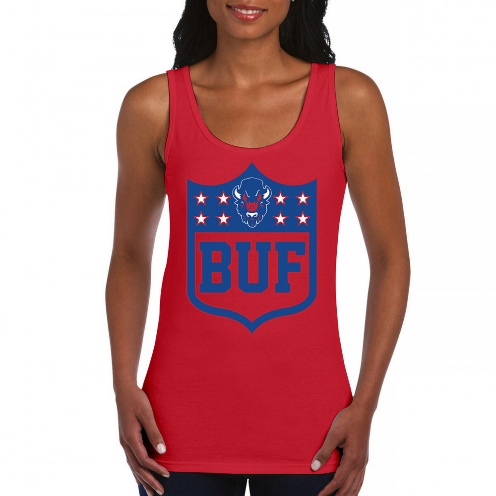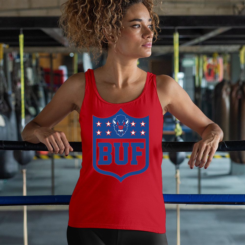 Bold Buffalo bison shield design for game day gear, tailgating, Sunday football, and championship pride in The Queen City.