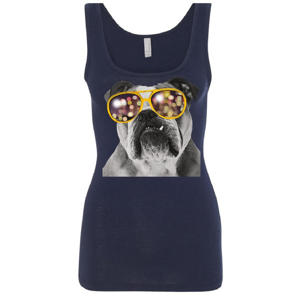 BULLDOG WEARING GLASSES women's tank top cute dog swag pet lovers urban top navy blue