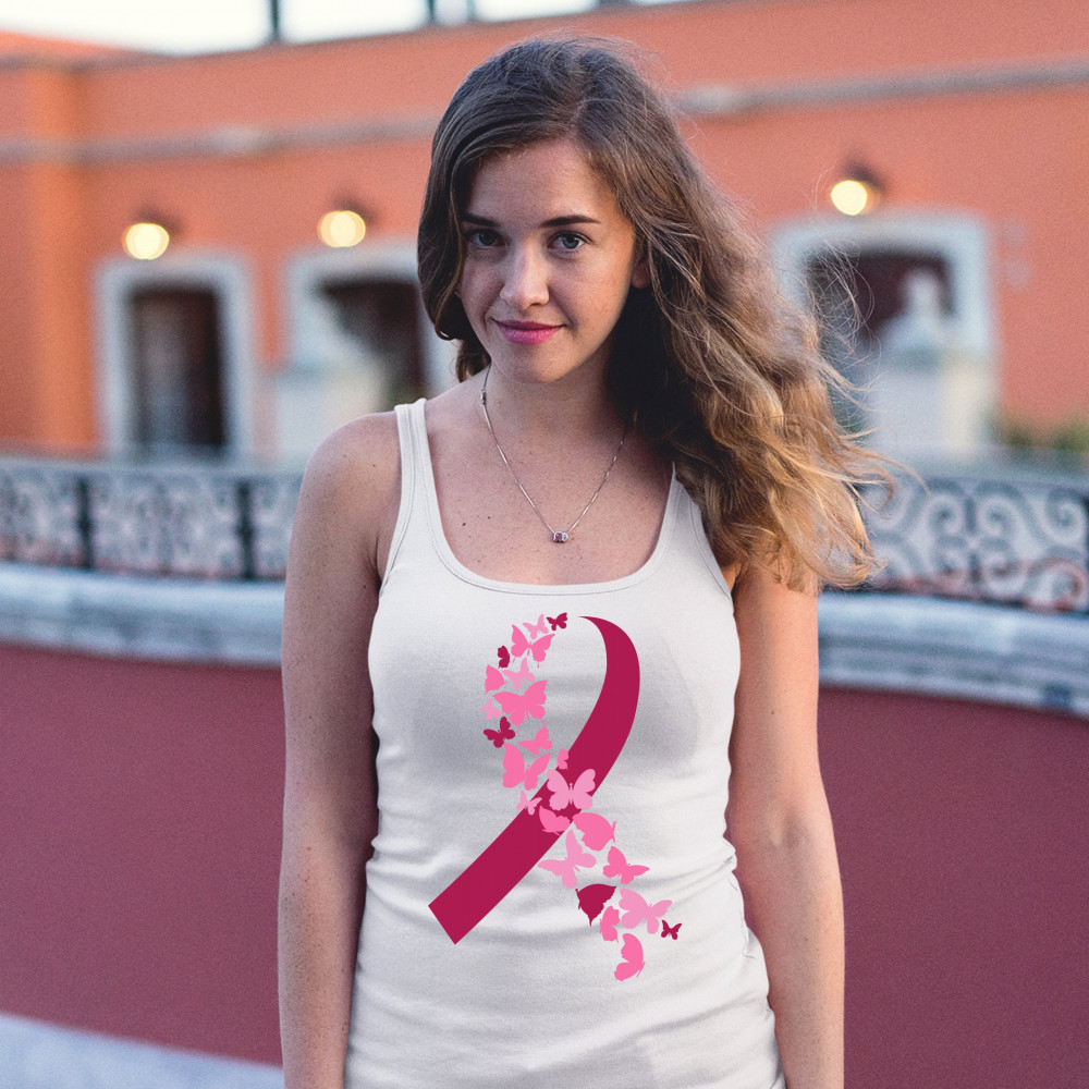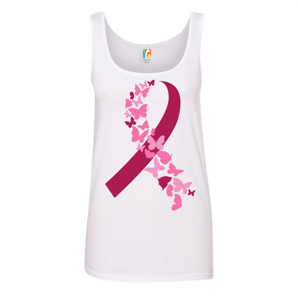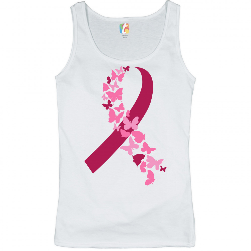 BUTTERFLIES PINK RIBBON women's tank top breast cancer awareness hope white