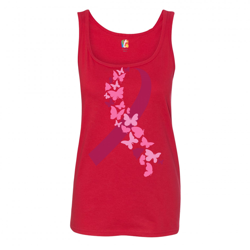BUTTERFLIES PINK RIBBON women's tank top breast cancer awareness hope red
