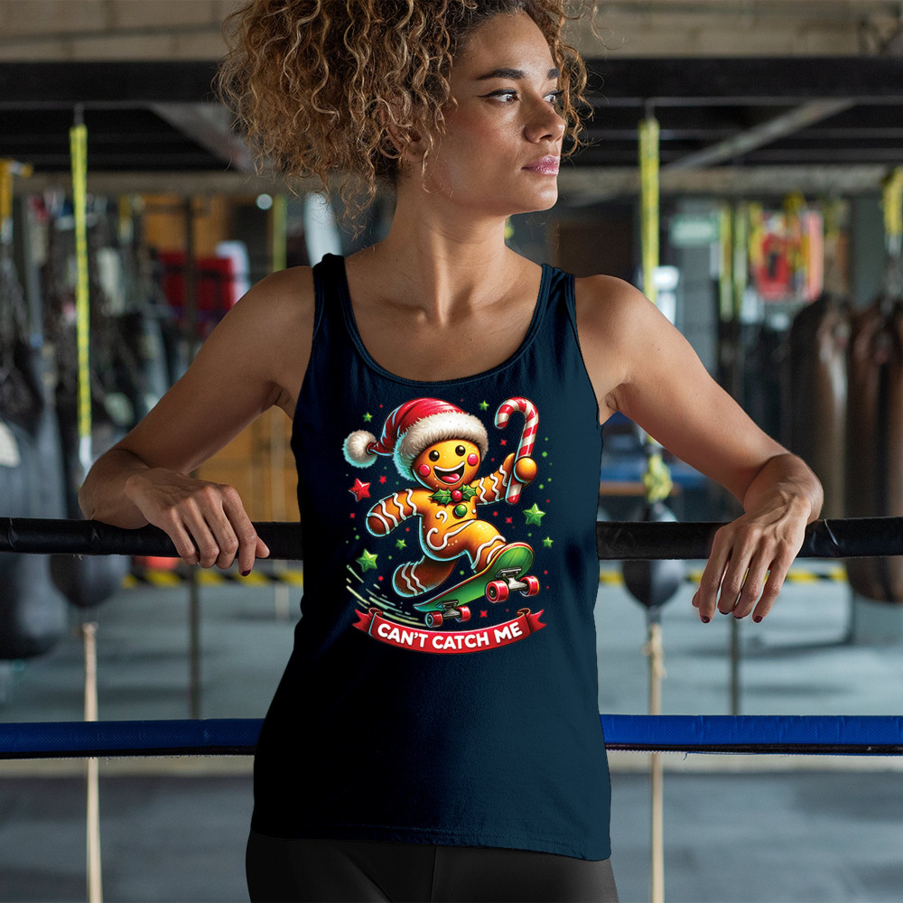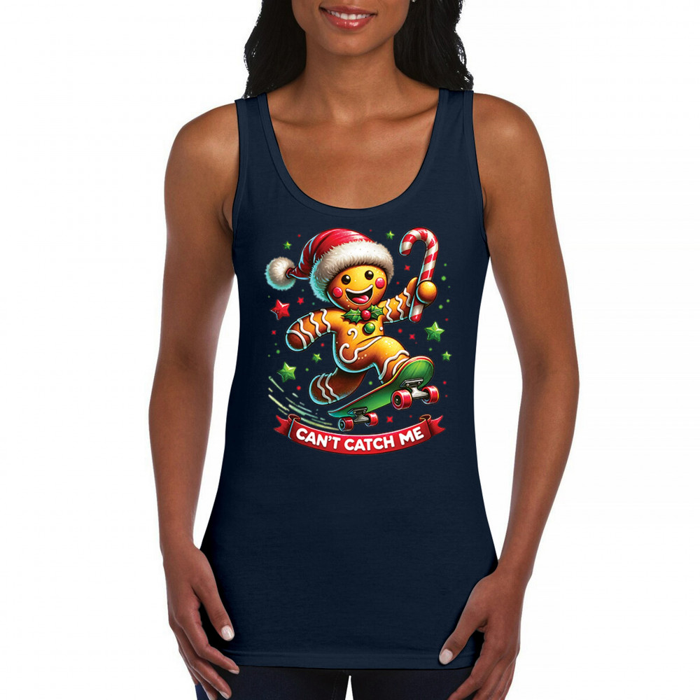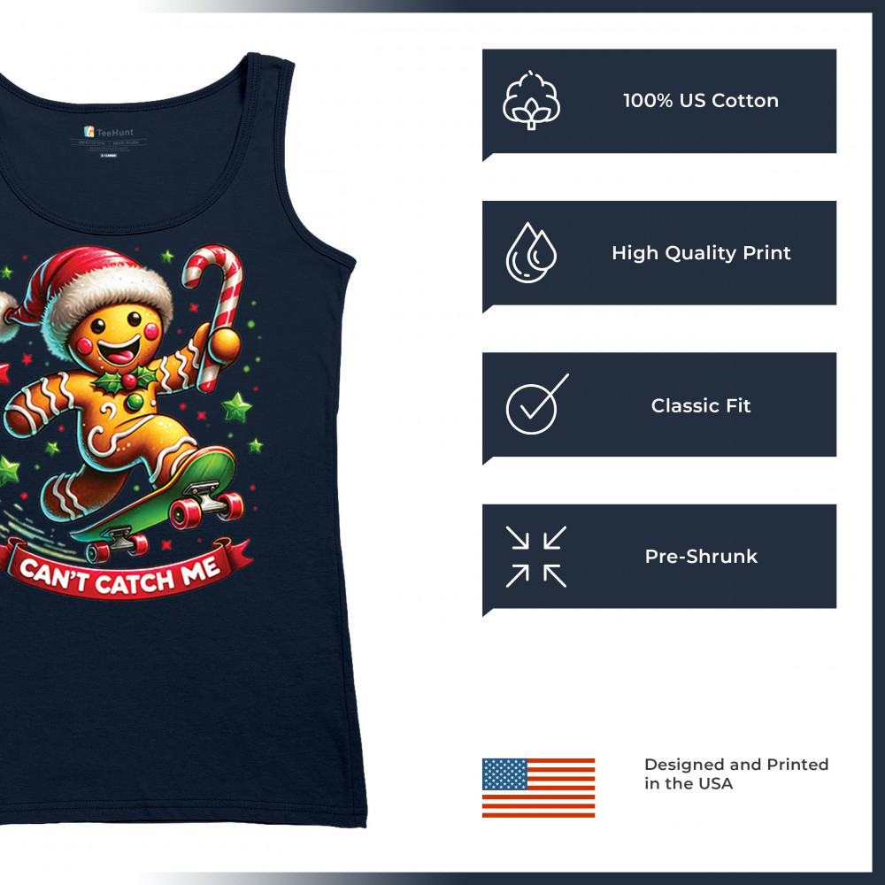 A fun Christmas design featuring a gingerbread character on a skateboard, candy cane in hand, and bright festive colors. Perfect for holiday party outfits, family gatherings, Christmas photos, festive humor fans, stocking stuffer gifting, winter celebrations, and anyone who loves playful seasonal graphics with cheerful personality.
