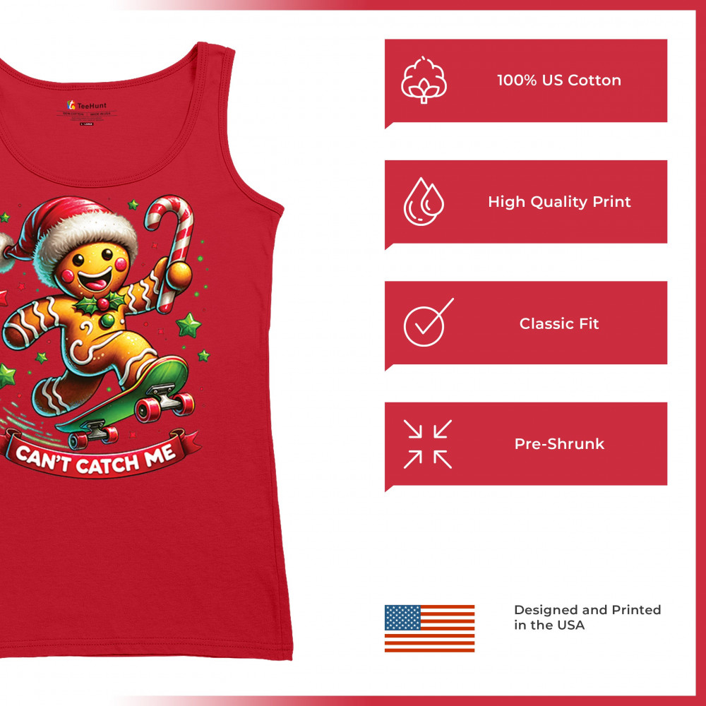 A fun Christmas design featuring a gingerbread character on a skateboard, candy cane in hand, and bright festive colors. Perfect for holiday party outfits, family gatherings, Christmas photos, festive humor fans, stocking stuffer gifting, winter celebrations, and anyone who loves playful seasonal graphics with cheerful personality.