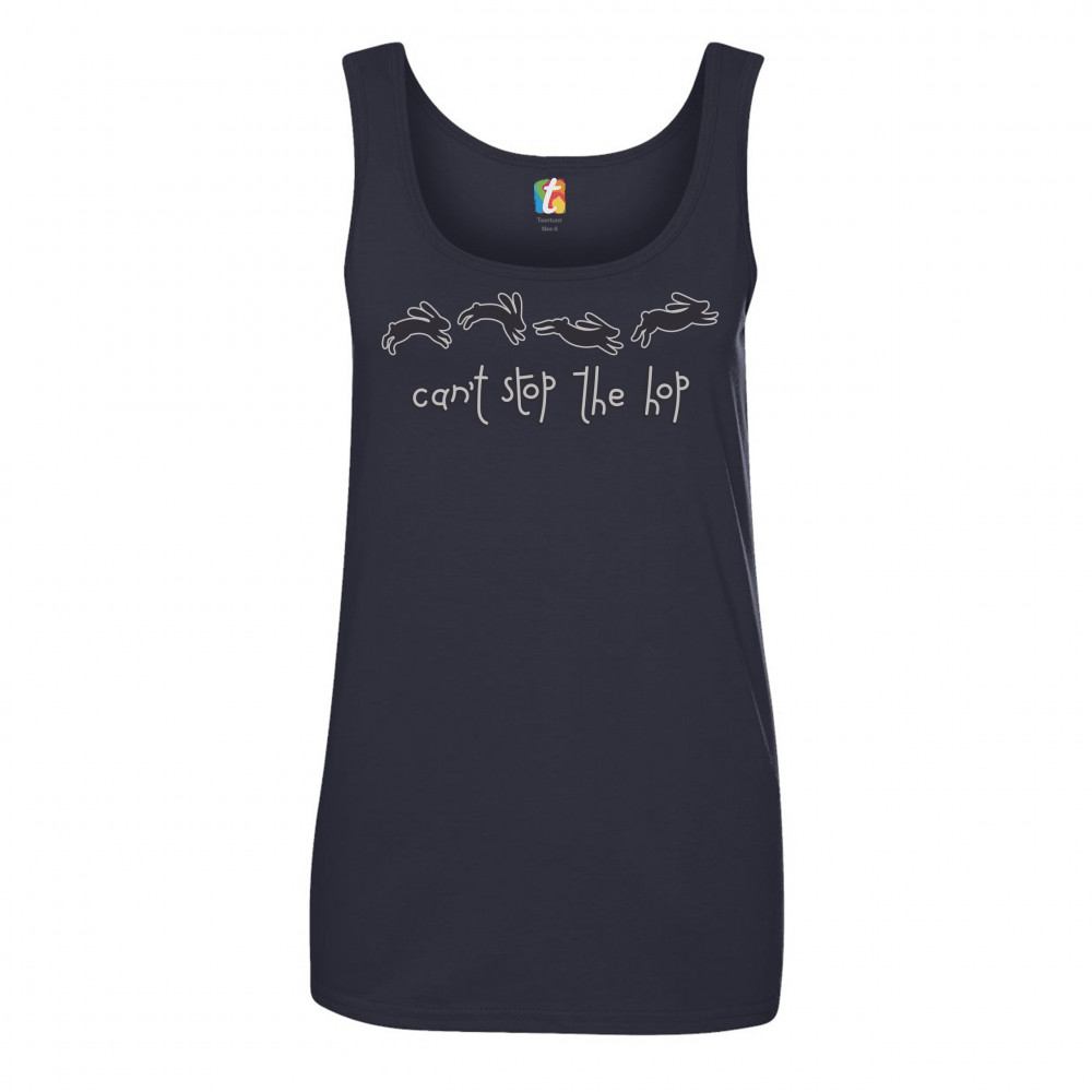 CAN'T STOP THE HOP women's tank top happy easter funny hopping rabbits navy blue