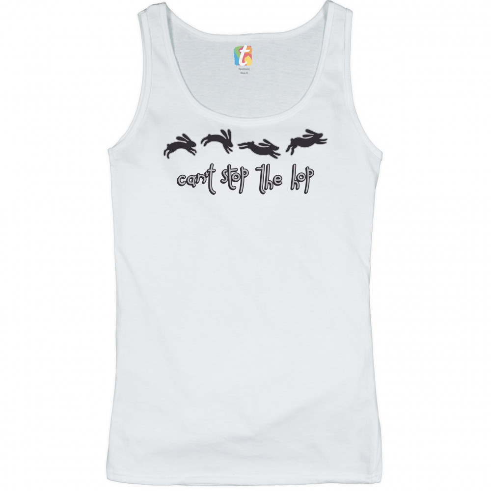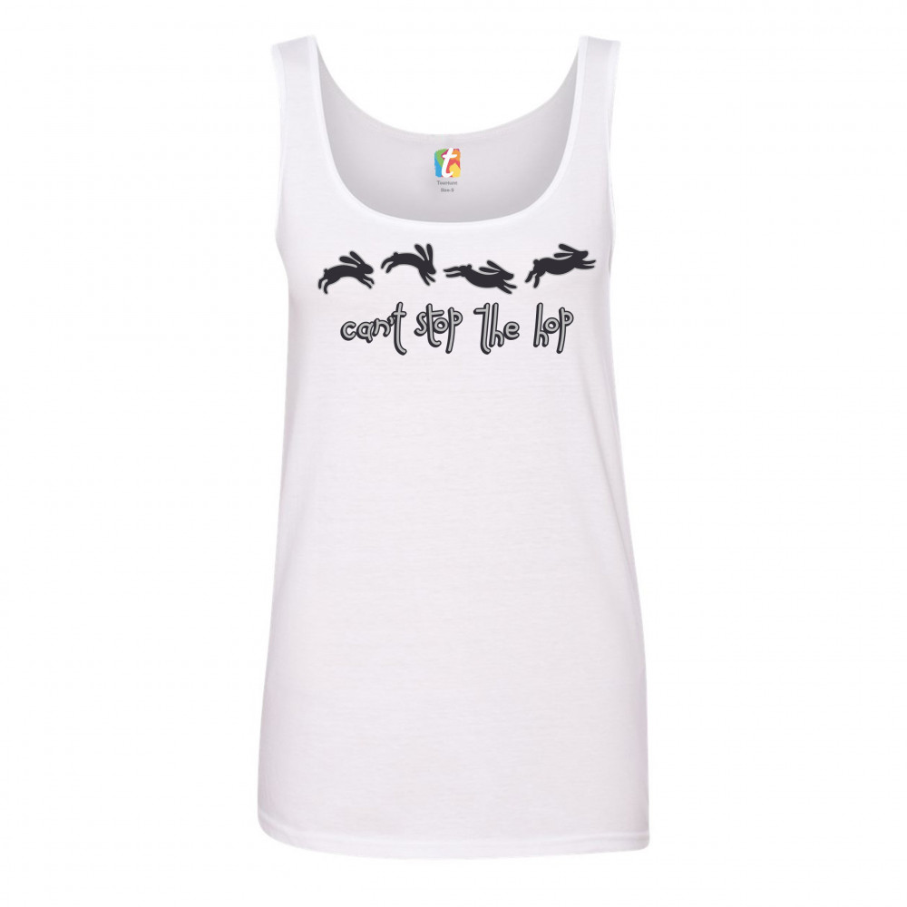 CAN'T STOP THE HOP women's tank top happy easter funny hopping rabbits white
