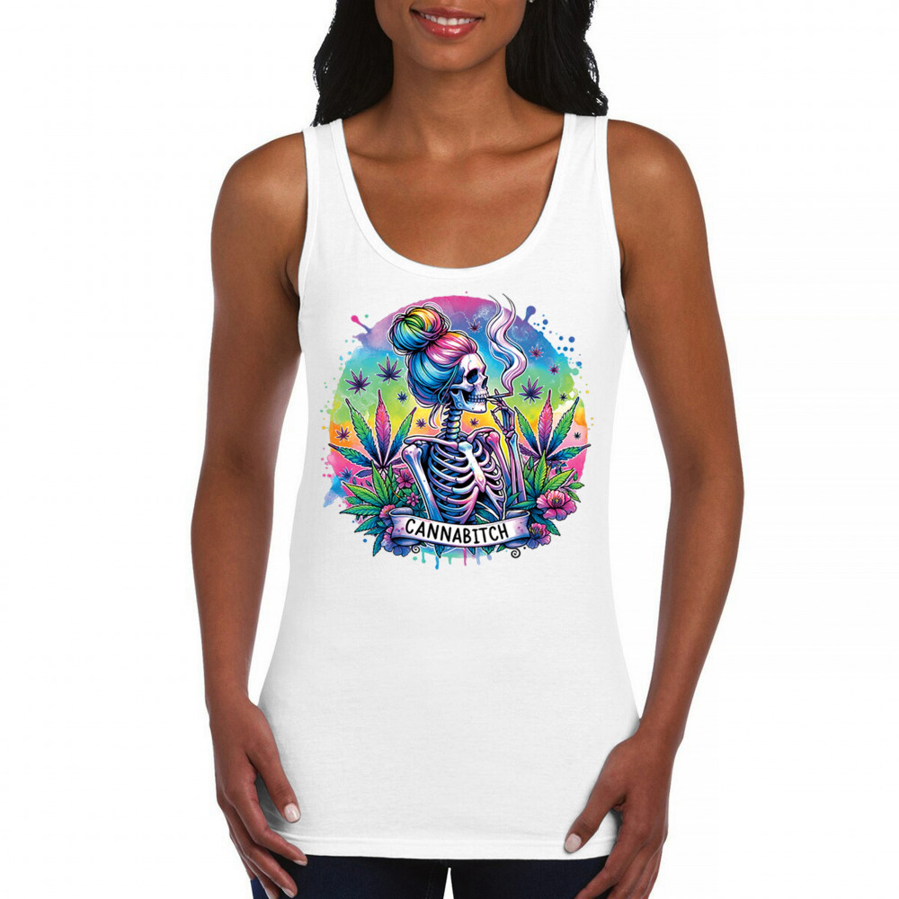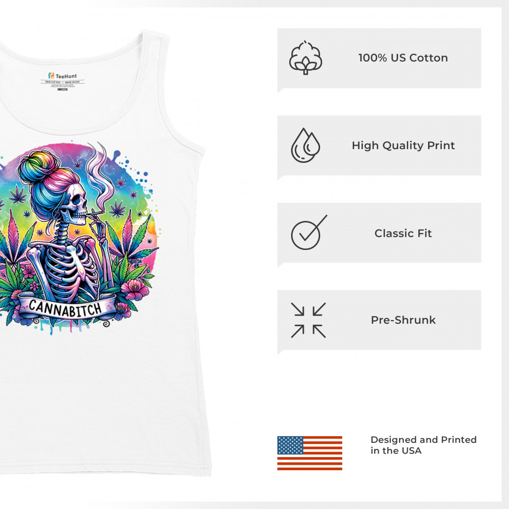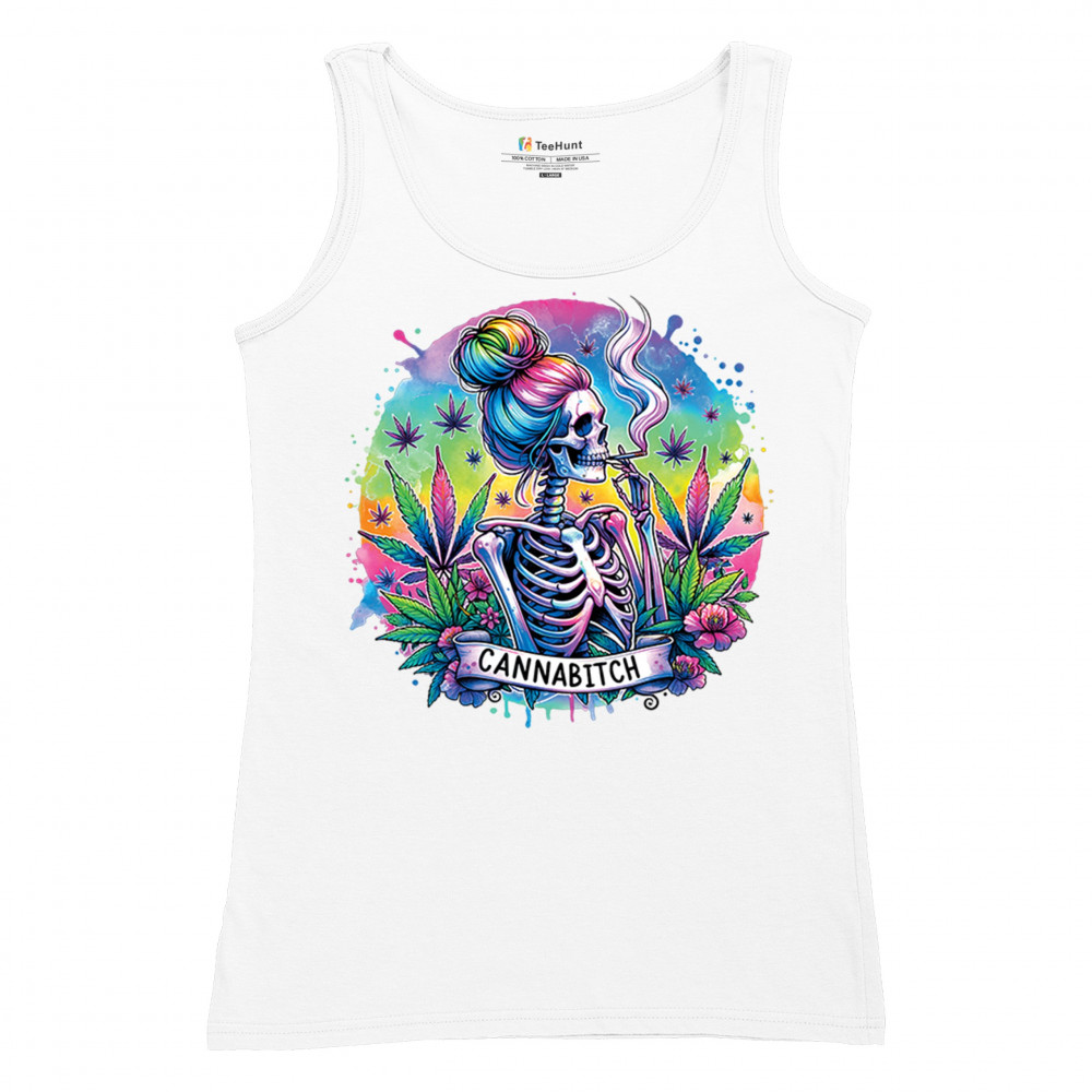 Unleash your inner weed queen with this CANNABITCH design—a psychedelic rainbow skeleton with major stoner girl energy. Dripping in neon colors, bold bud leaves, and fierce feminine vibes, it's a head-turning graphic for cannabis culture lovers, party girls, and unapologetically high women.