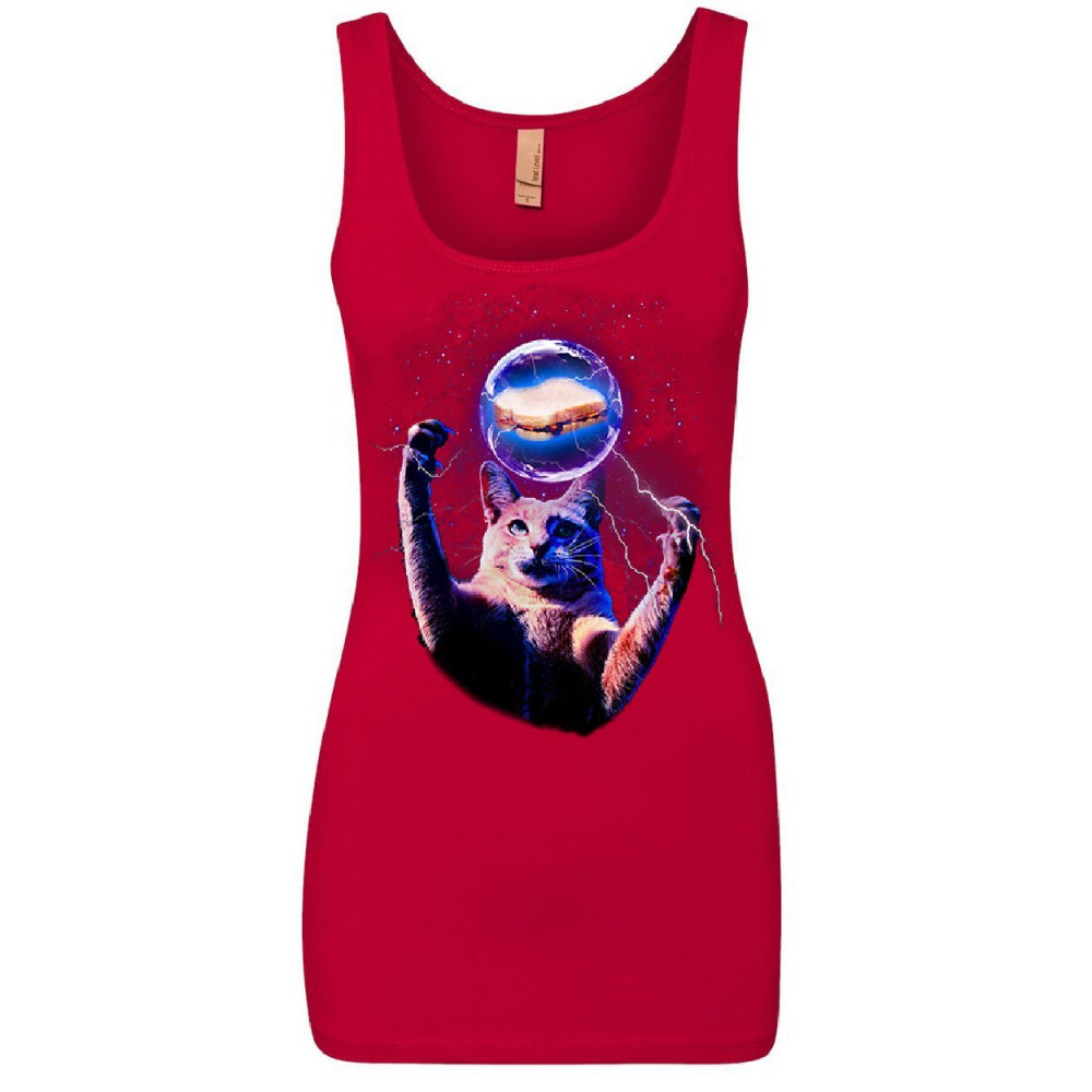 CAT CATCHING A PB&J cat catching a sandwich women's tank top plasma ball kitty kitten weird top red