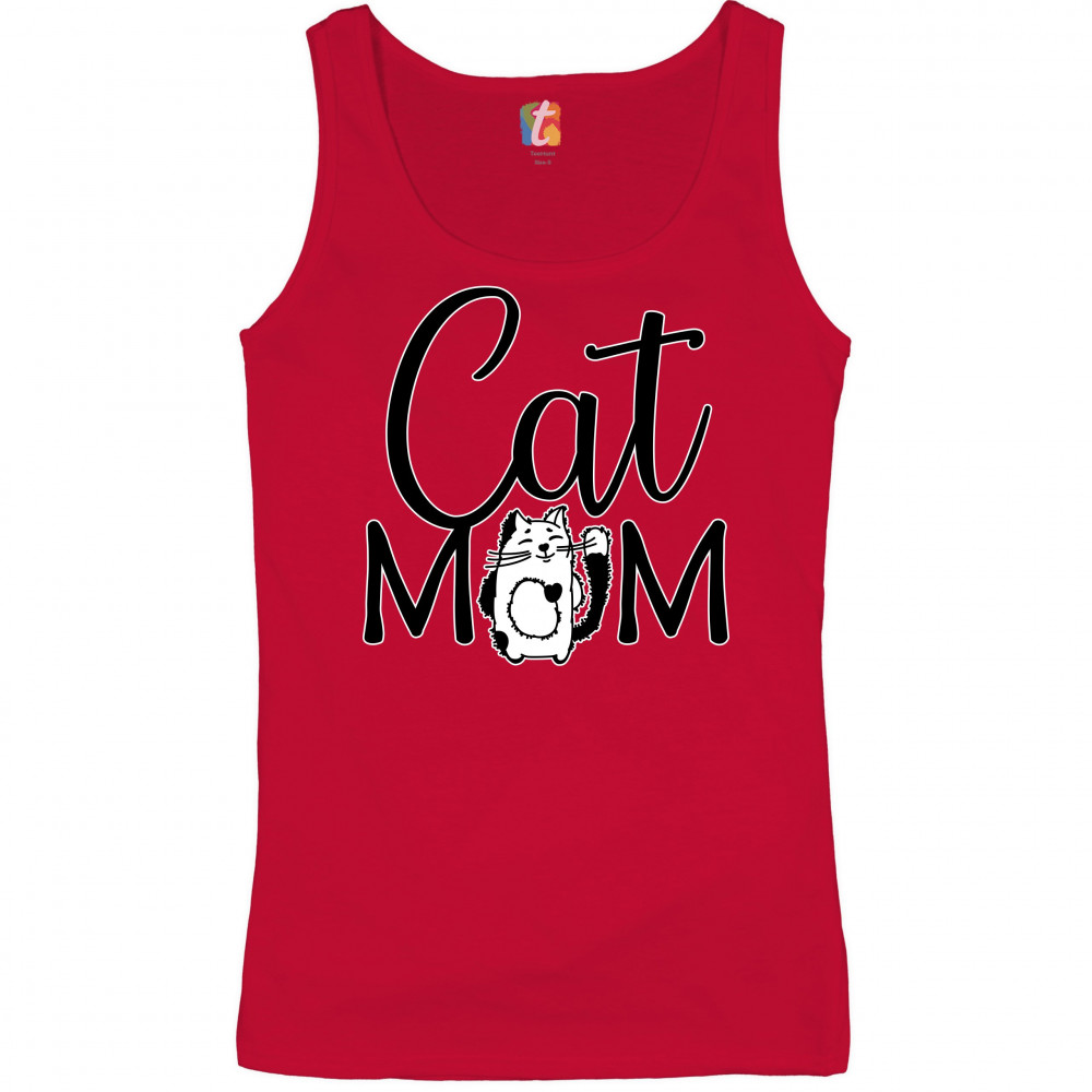 CAT MOM women's tank top mother's day fur mama cat lover kitty red