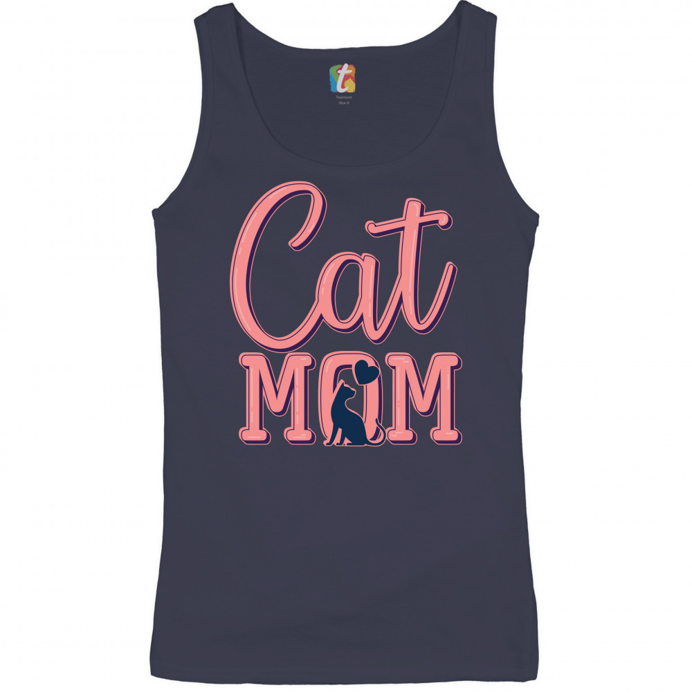 CAT MOM women's tank top mother's day i love my my pet lover mama navy blue