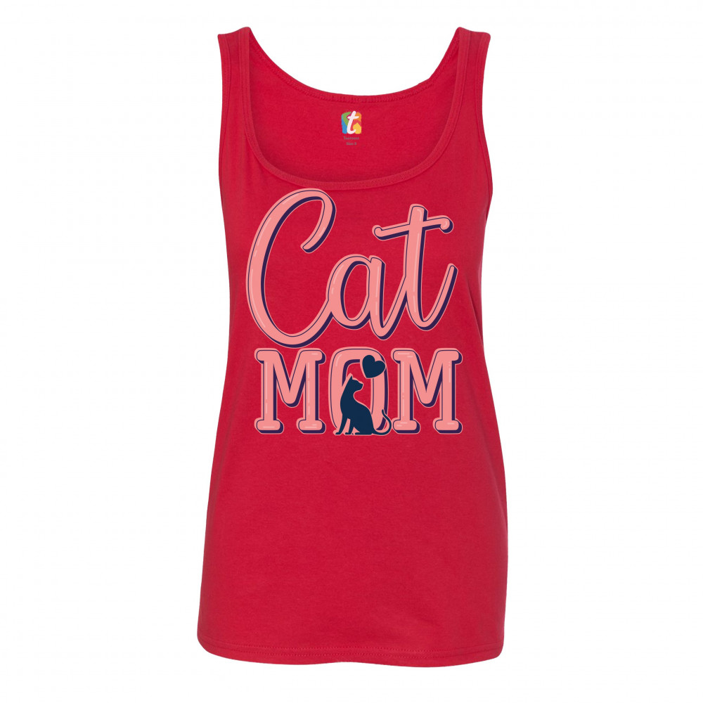 CAT MOM women's tank top mother's day i love my my pet lover mama red