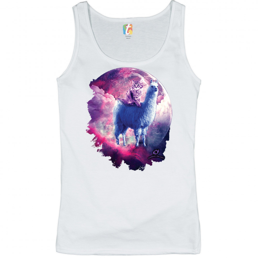 CAT RIDING A LLAMA IN SPACE women's tank top weird galaxy moon creative white