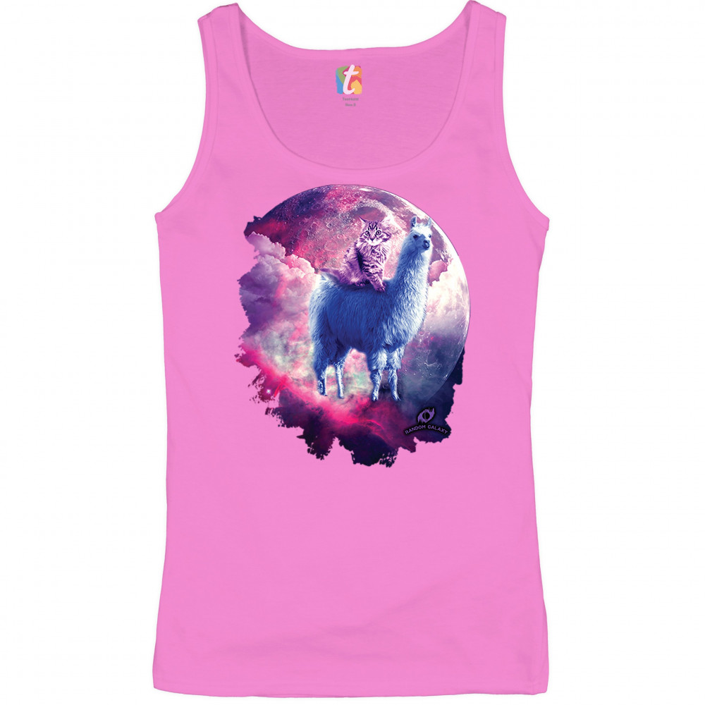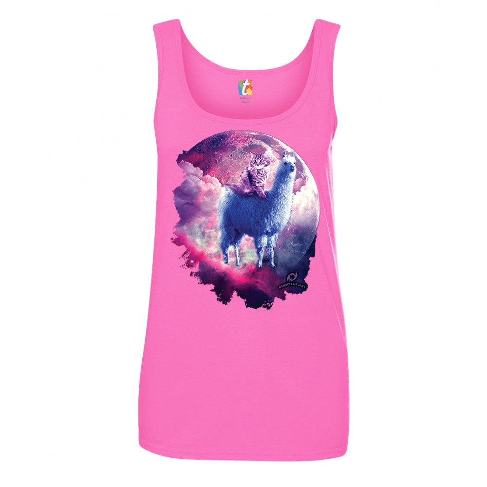 CAT RIDING A LLAMA IN SPACE women's tank top weird galaxy moon creative pink