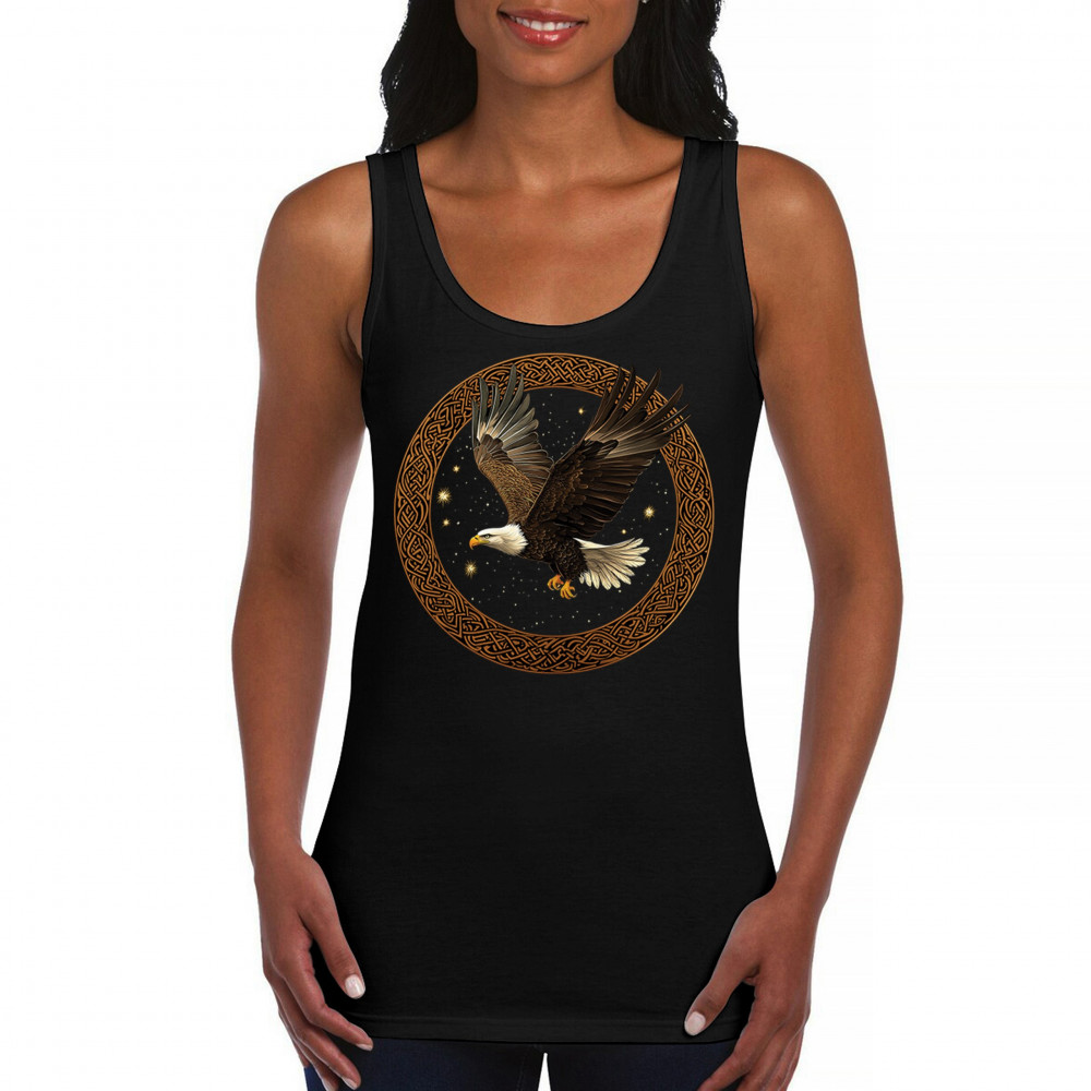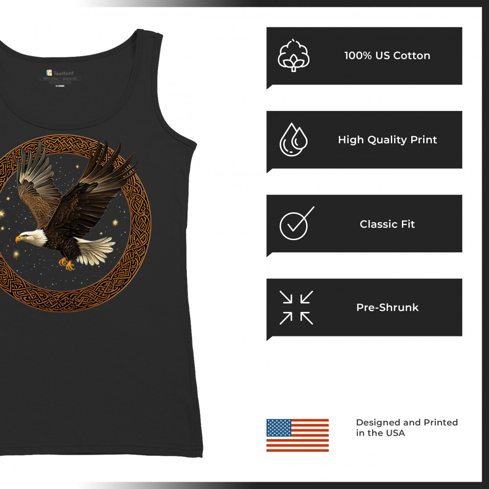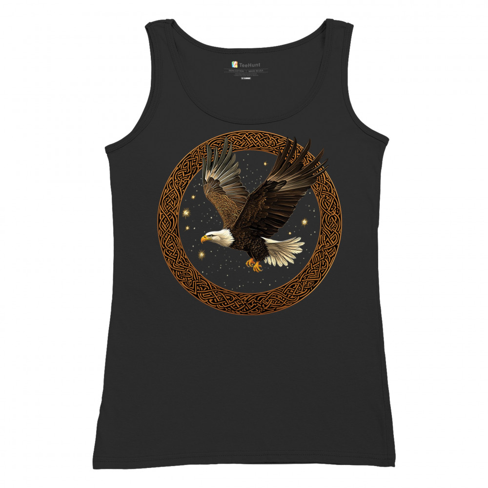 This powerful bald eagle takes flight within a Celtic knotwork circle, radiating strength, independence, and cosmic energy. The glowing stars and celestial background add mystic symbolism, blending nature, tribal design, and spirituality. Perfect for patriots, spiritual seekers, and bird enthusiasts.