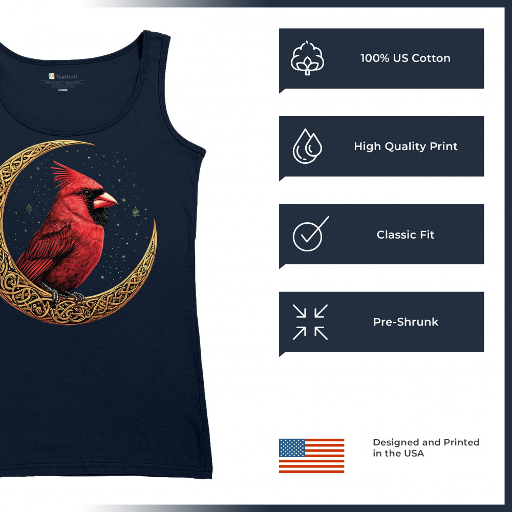 Mystical cardinal with Celtic moon and stars—perfect for nature lovers, spiritual souls, and those honoring love, loss, or remembrance.