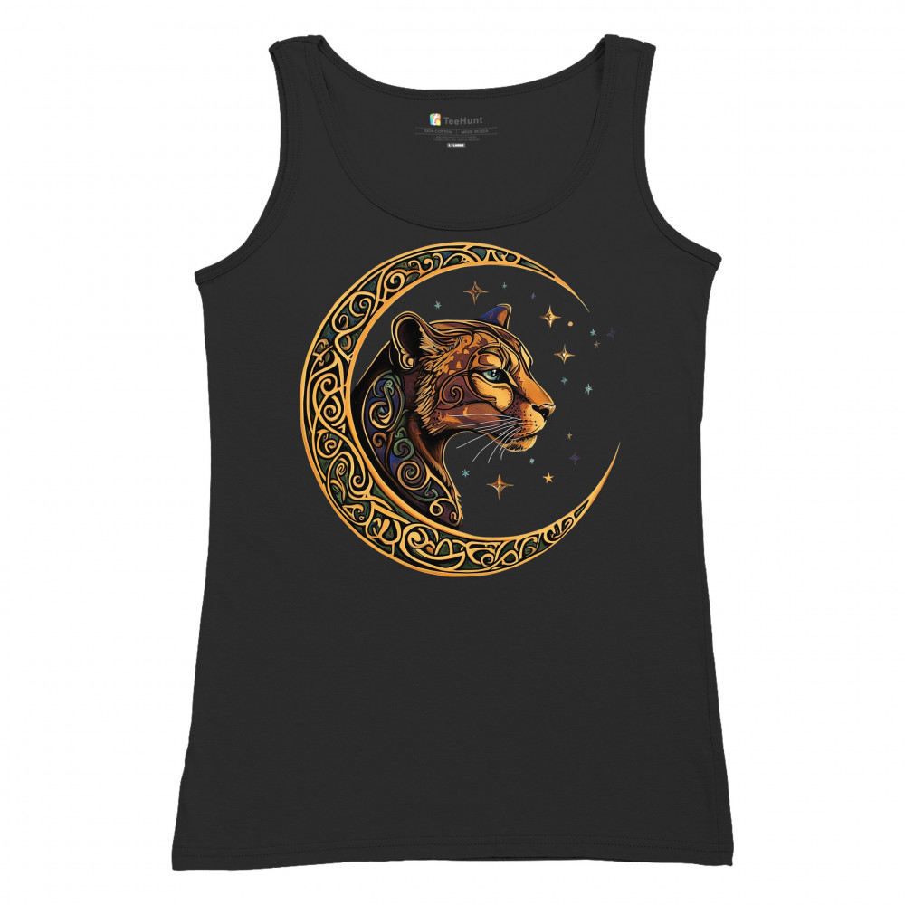 Mystical and elegant, this celestial leopard design merges wild animal strength with spiritual energy. Framed by a golden Celtic crescent moon and set against a starlit sky, it captures themes of nature, intuition, tribal symbolism, fantasy, and feminine power. Ideal for astrology fans, animal lovers, and seekers of cosmic connection.