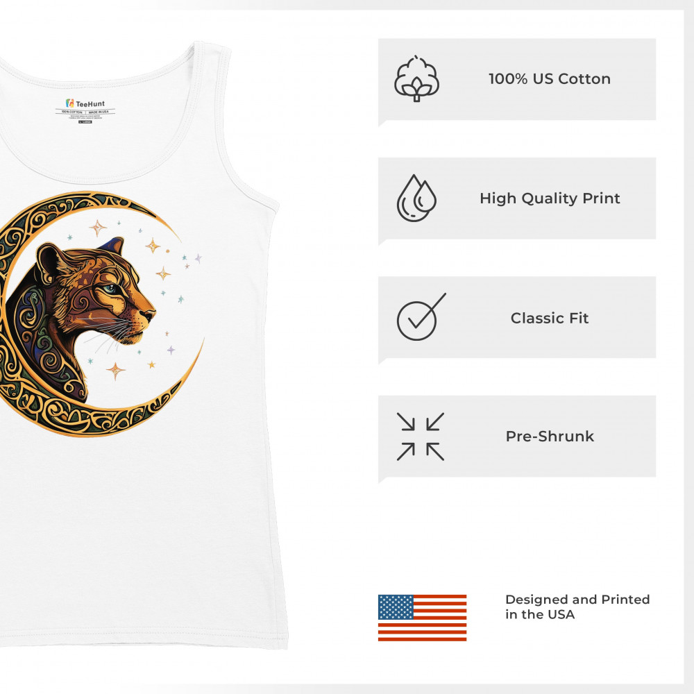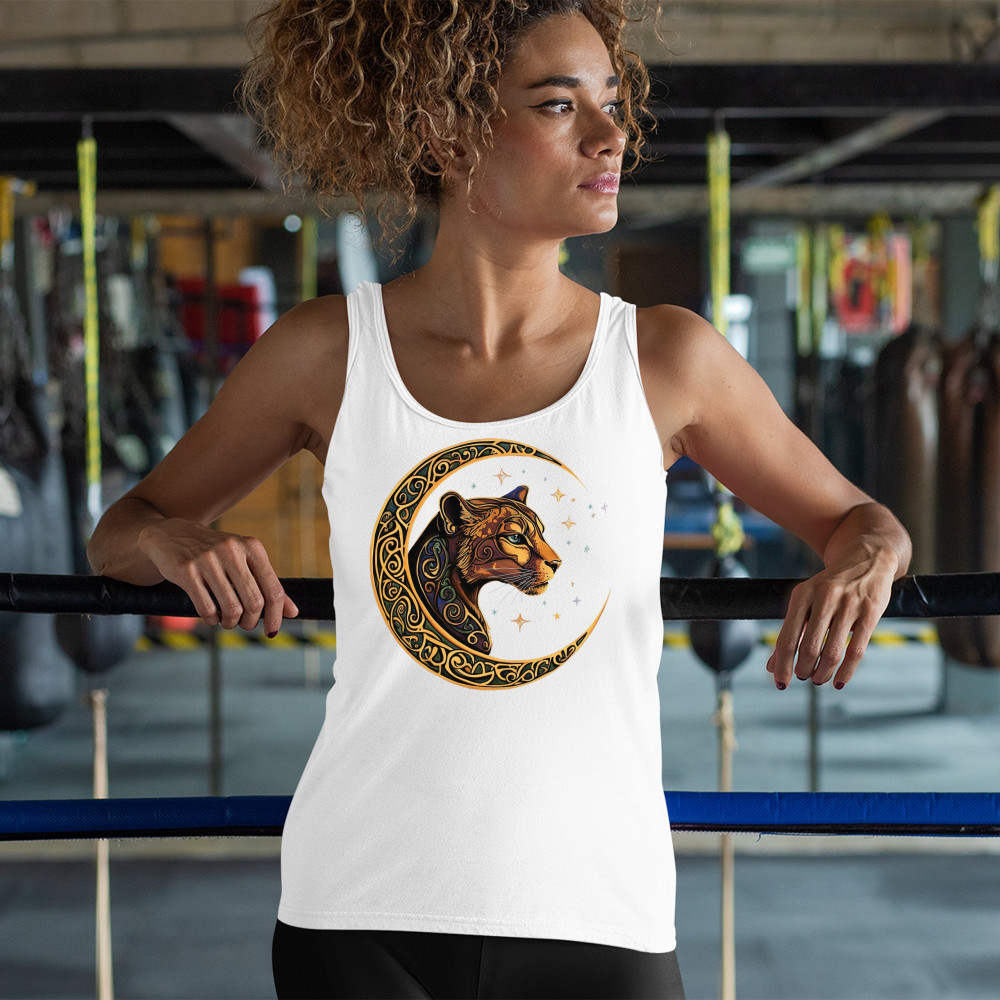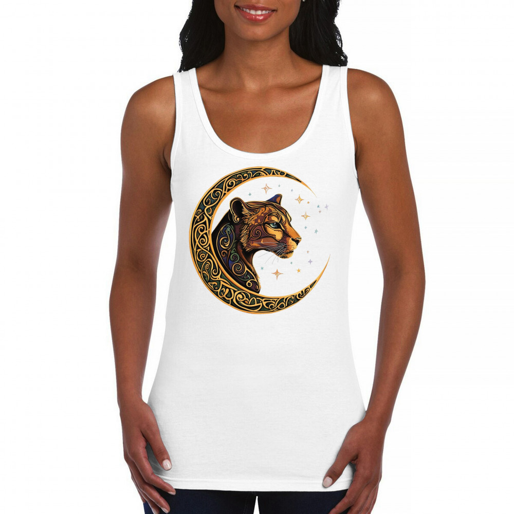 Mystical and elegant, this celestial leopard design merges wild animal strength with spiritual energy. Framed by a golden Celtic crescent moon and set against a starlit sky, it captures themes of nature, intuition, tribal symbolism, fantasy, and feminine power. Ideal for astrology fans, animal lovers, and seekers of cosmic connection.