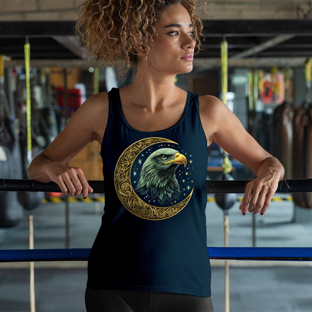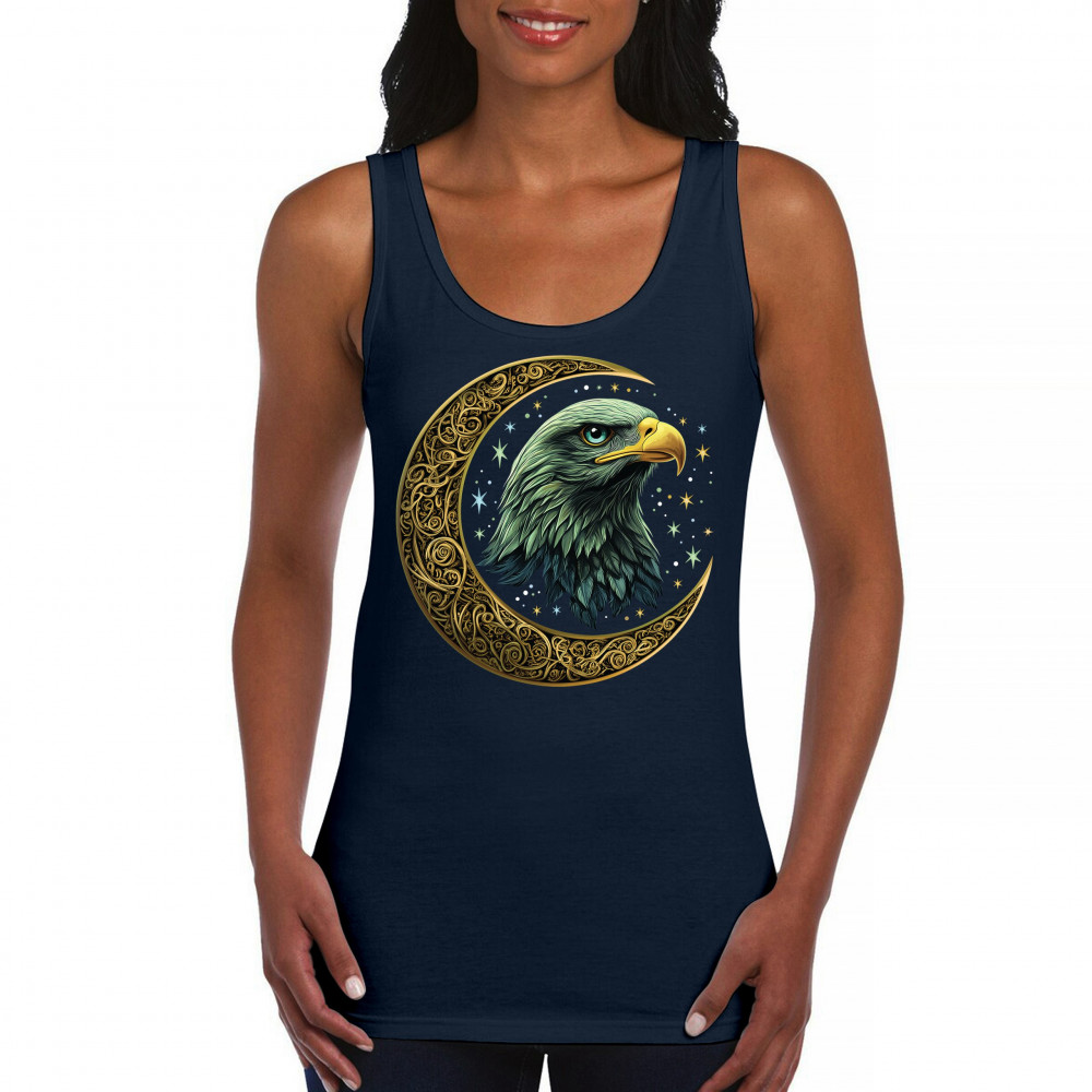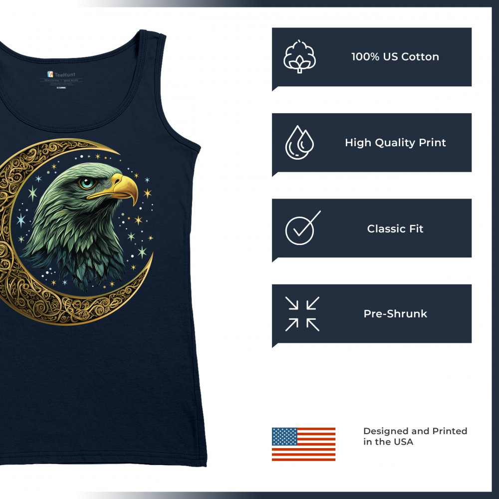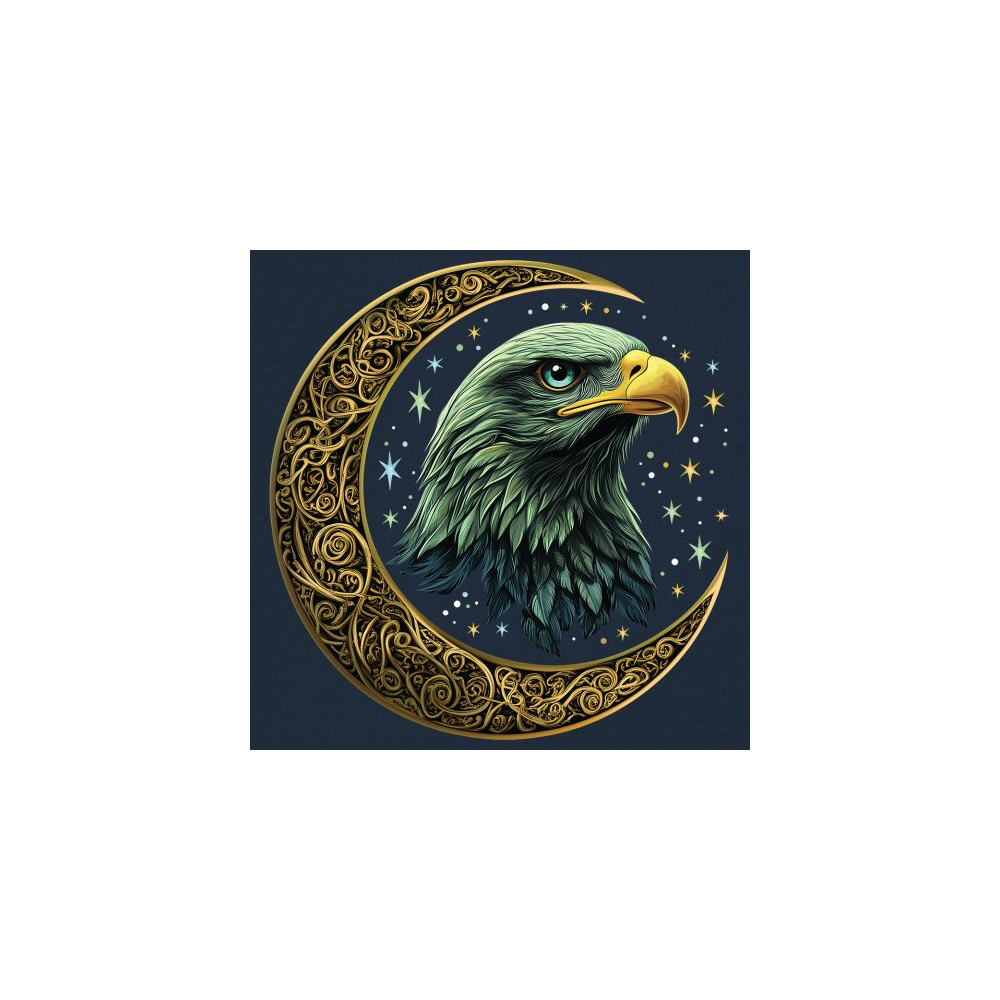Majestic eagle in golden Celtic moon with stars—symbol of strength, vision, and freedom. Perfect for patriots, spiritual seekers, and nature lovers.