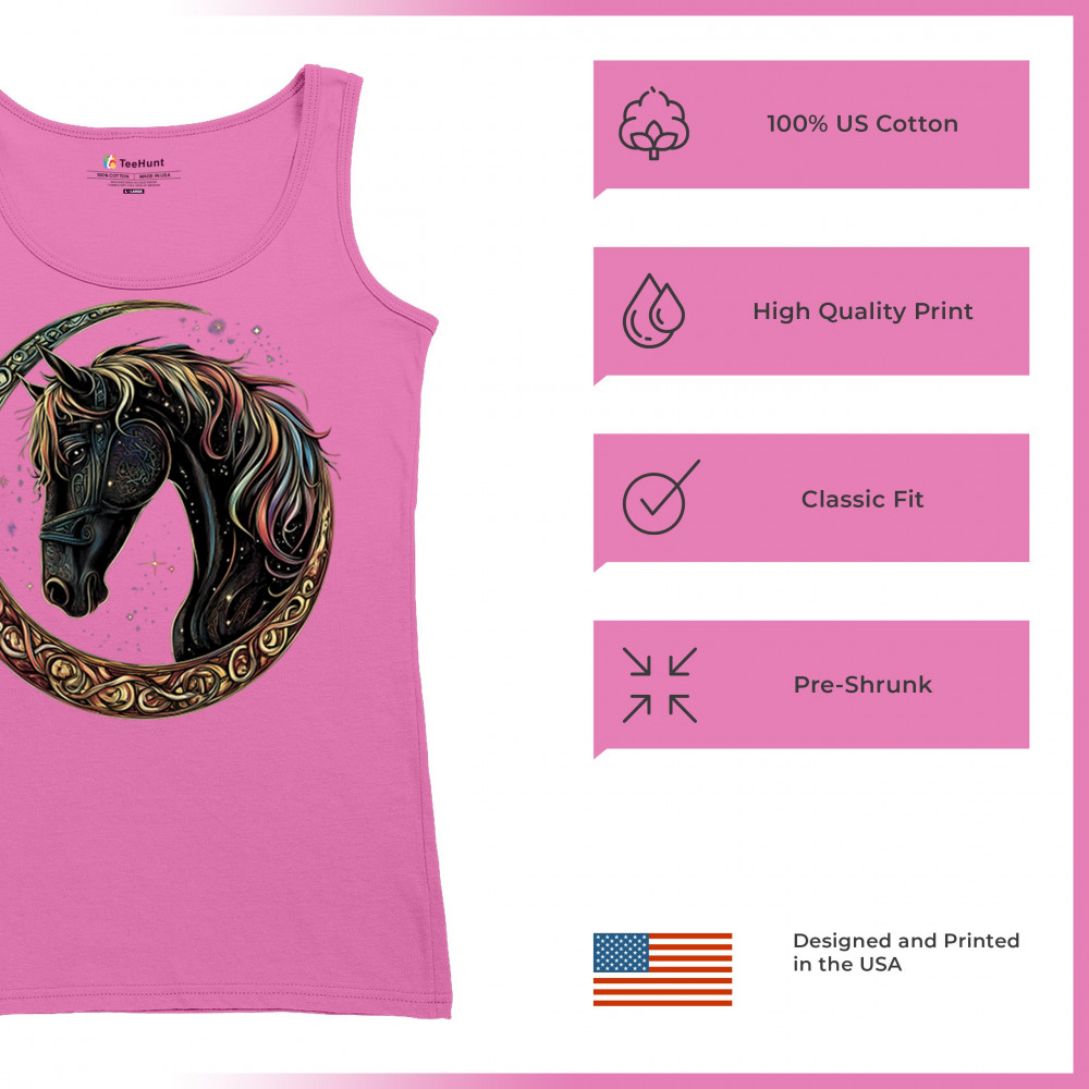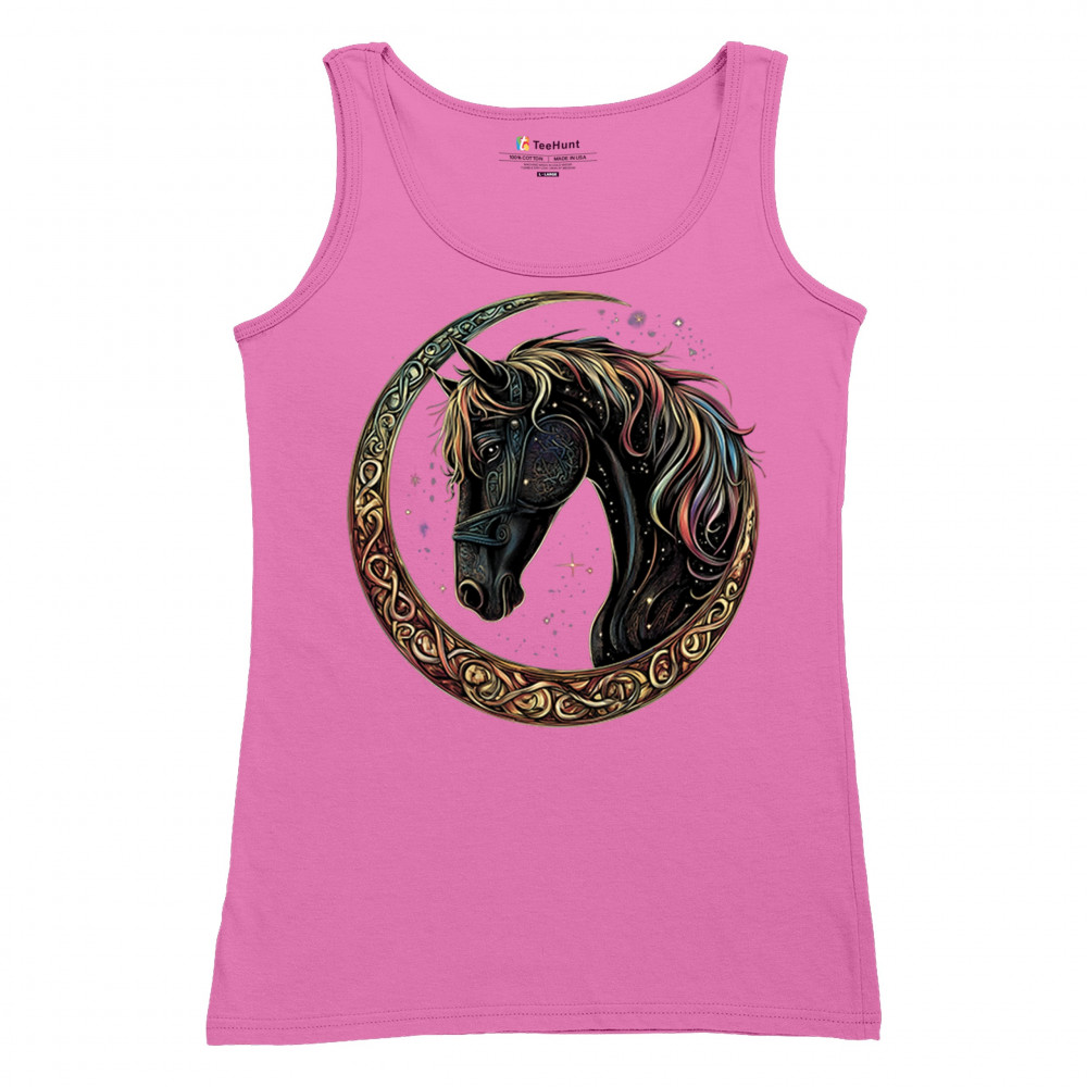 Celebrate the power and grace of the cosmos with this majestic black horse framed by a golden Celtic crescent moon. Its rainbow mane and celestial body symbolize strength, movement, mystery, and spiritual magic. A stunning piece for fantasy fans, equestrians, and dreamers who love horses and stars.