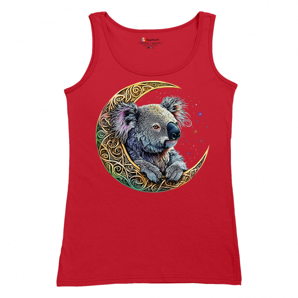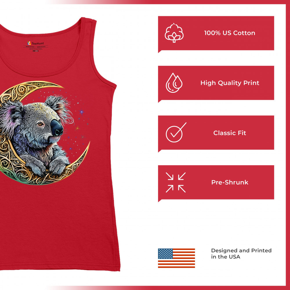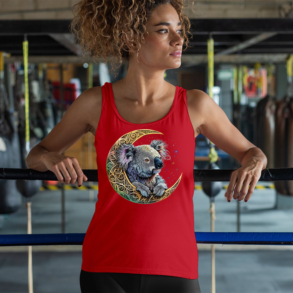 Koala resting in Celtic crescent moon with cosmic sky. A peaceful design for nature lovers, spiritual thinkers, and fantasy art fans.