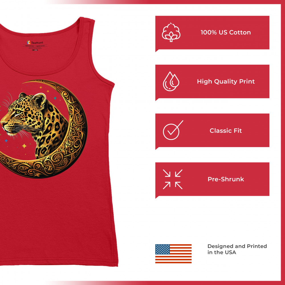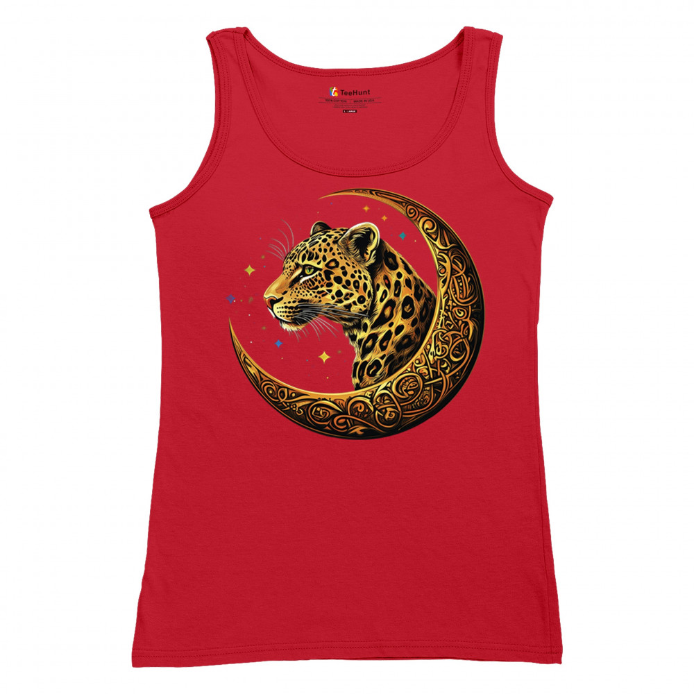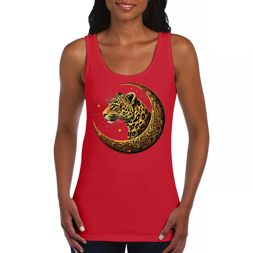 Unleash wild energy and spiritual symbolism with this bold leopard design set inside a golden Celtic crescent moon. A cosmic starry background amplifies its mystical vibe, symbolizing agility, independence, and awareness. Perfect for big cat lovers, jungle animal fans, and seekers of fantasy or tribal-inspired art.