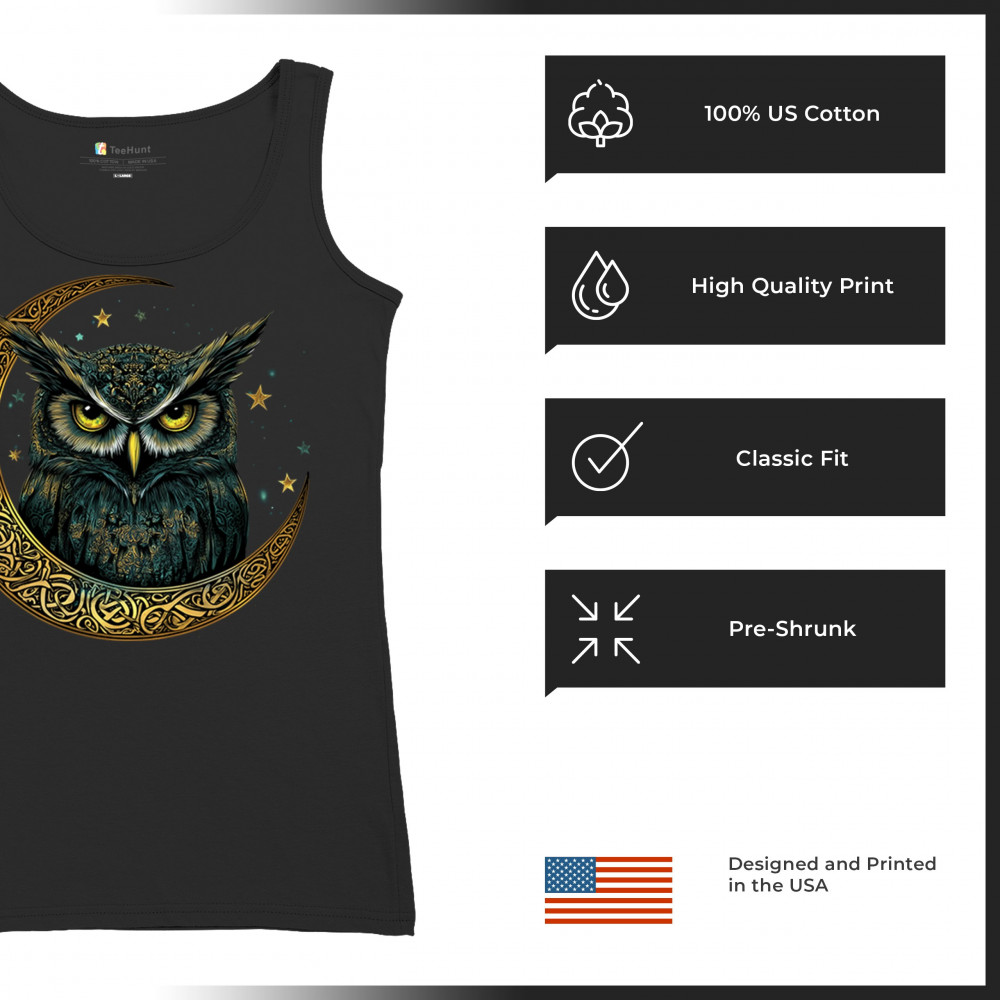 Cosmic owl in Celtic crescent moon—symbol of wisdom, night mystery, and spirit. Perfect for mystics, owl lovers, and fantasy fans.