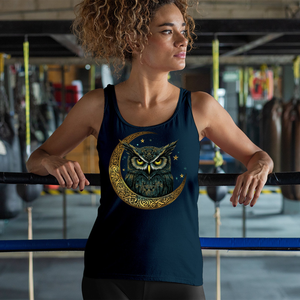 Cosmic owl in Celtic crescent moon—symbol of wisdom, night mystery, and spirit. Perfect for mystics, owl lovers, and fantasy fans.