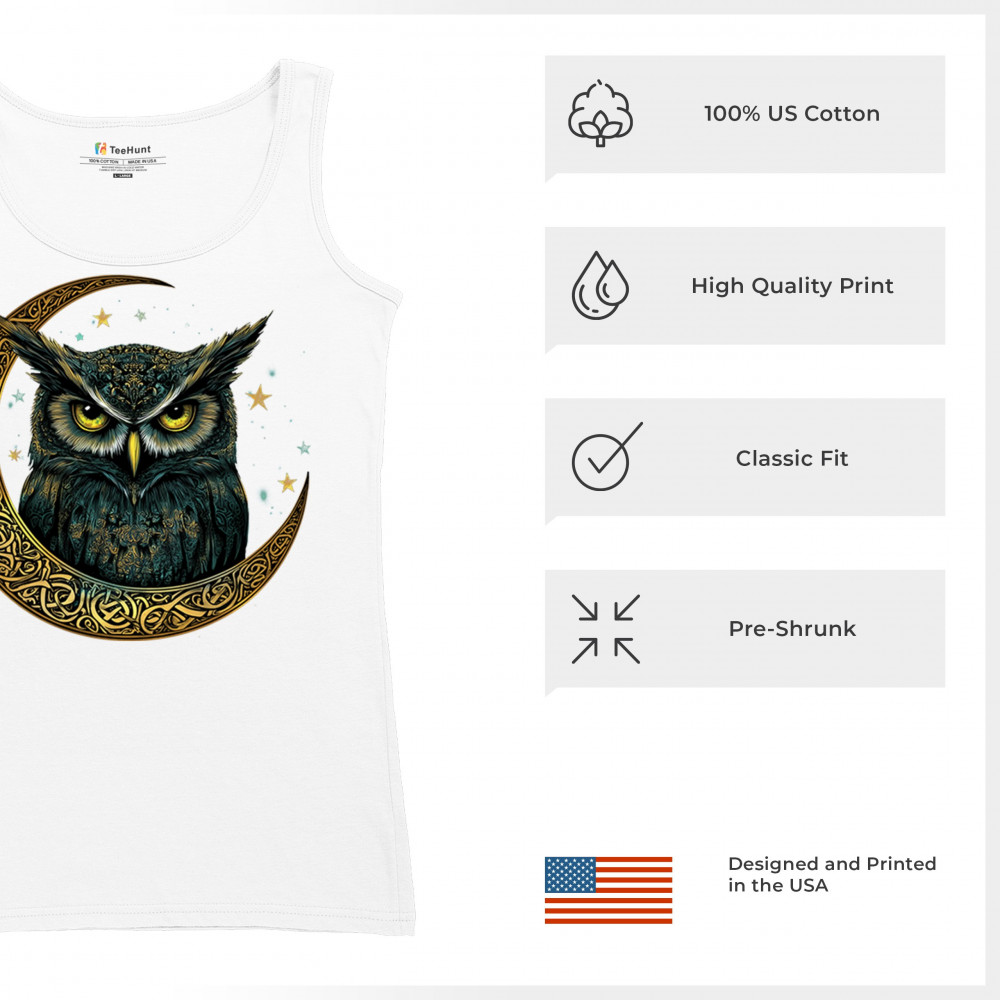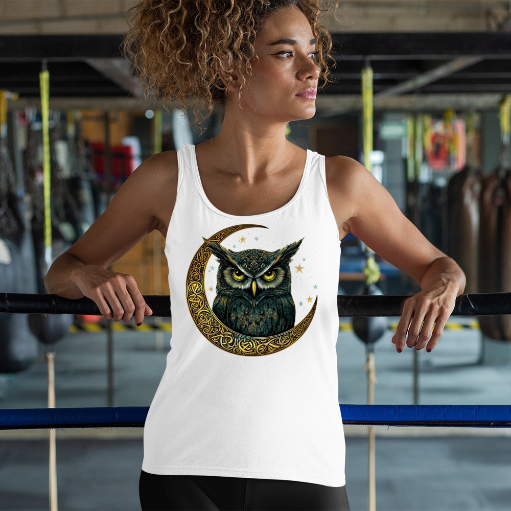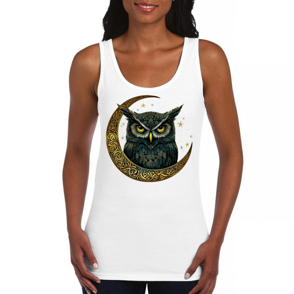 Cosmic owl in Celtic crescent moon—symbol of wisdom, night mystery, and spirit. Perfect for mystics, owl lovers, and fantasy fans.