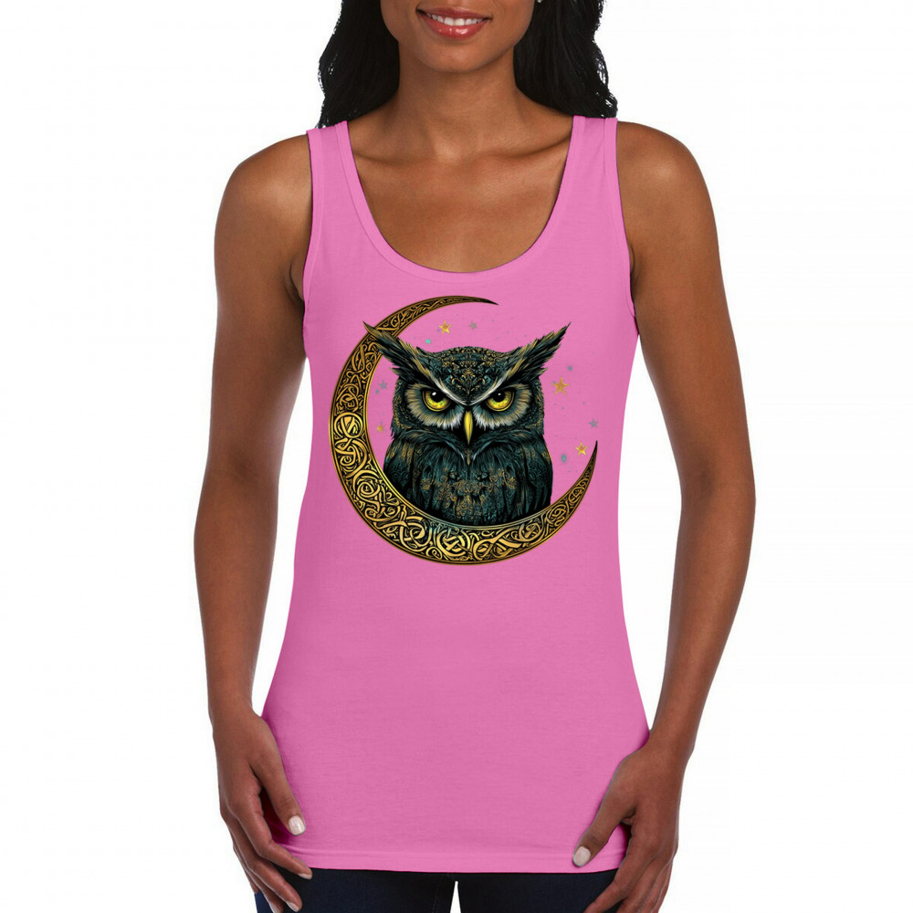 Cosmic owl in Celtic crescent moon—symbol of wisdom, night mystery, and spirit. Perfect for mystics, owl lovers, and fantasy fans.