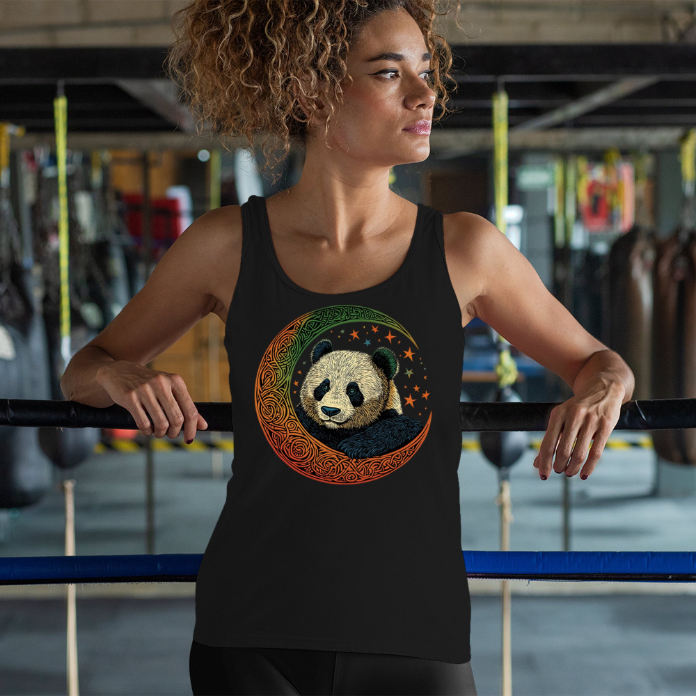 Peaceful panda in Celtic crescent moon design—symbol of harmony, balance, and spiritual calm for nature lovers, mystics, and gentle souls.