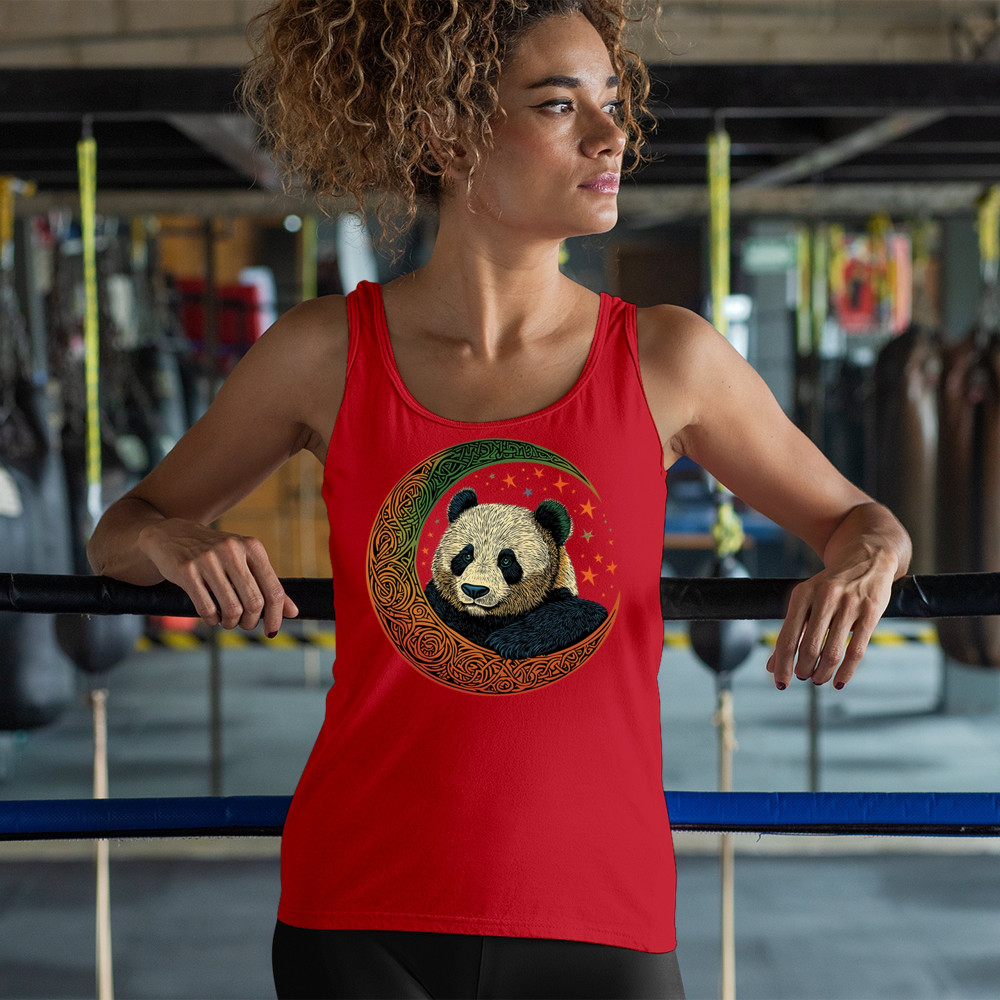 Peaceful panda in Celtic crescent moon design—symbol of harmony, balance, and spiritual calm for nature lovers, mystics, and gentle souls.